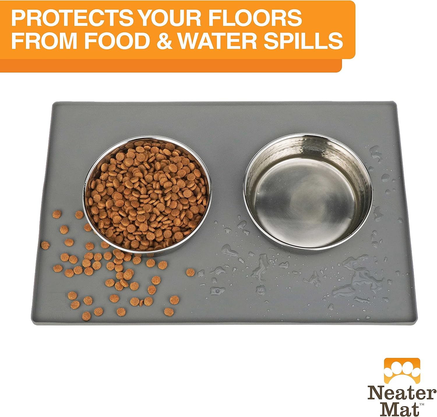 Neater Pet Brands Neater Mat Pet Mats for Food and Water, Cat & Dog Bowl Mat Waterproof Silicone, Feeding Tray, Dog Food Mats for Floors, Placemat w/Raised Edge for Under Bowls, 24" x 16", Grey