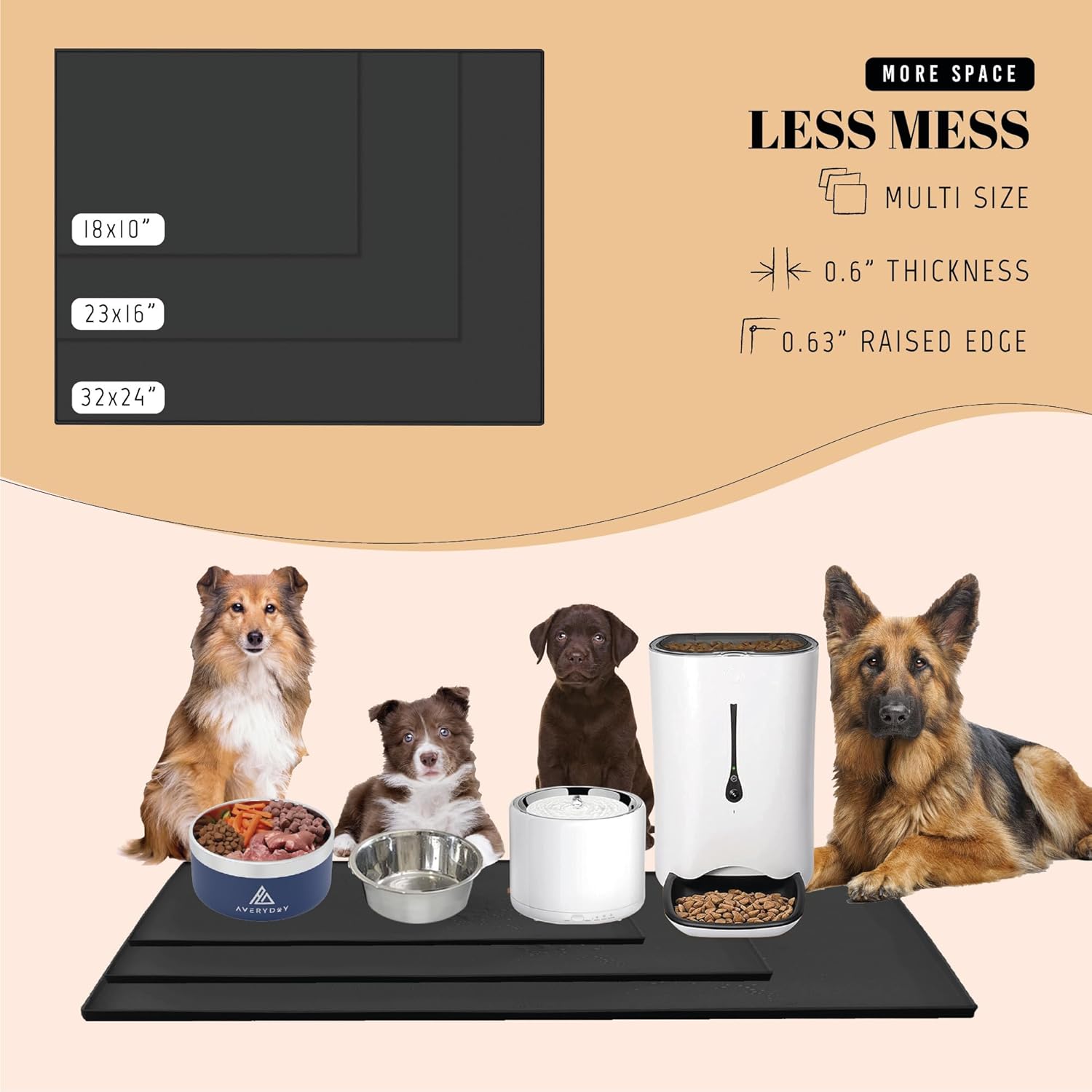 - Perfect for Medium to Large Breeds: Need a premium dog bowl mat for medium and small breeds? Elevate feeding affordably with AVERYDAY's 32x24'' pet bowl mat - where quality meets affordability for your furry friends