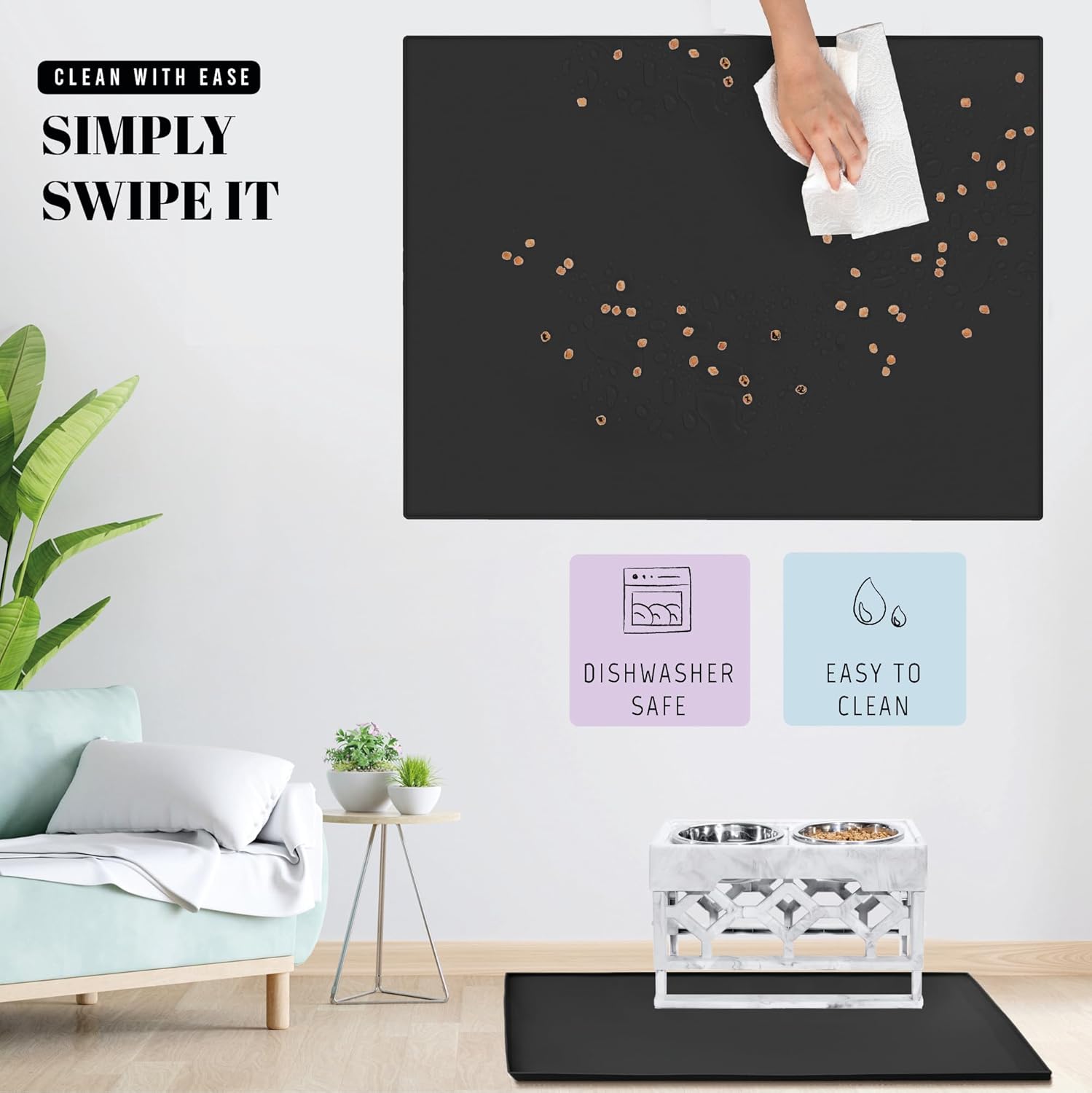 - Hassle-Free Cleanup: Want to reduce cleaning time? Our high durability dog food mat large for saves you the hassle. Just wipe it with a paper towel every 3-5 days, and say goodbye to daily cleanup chores