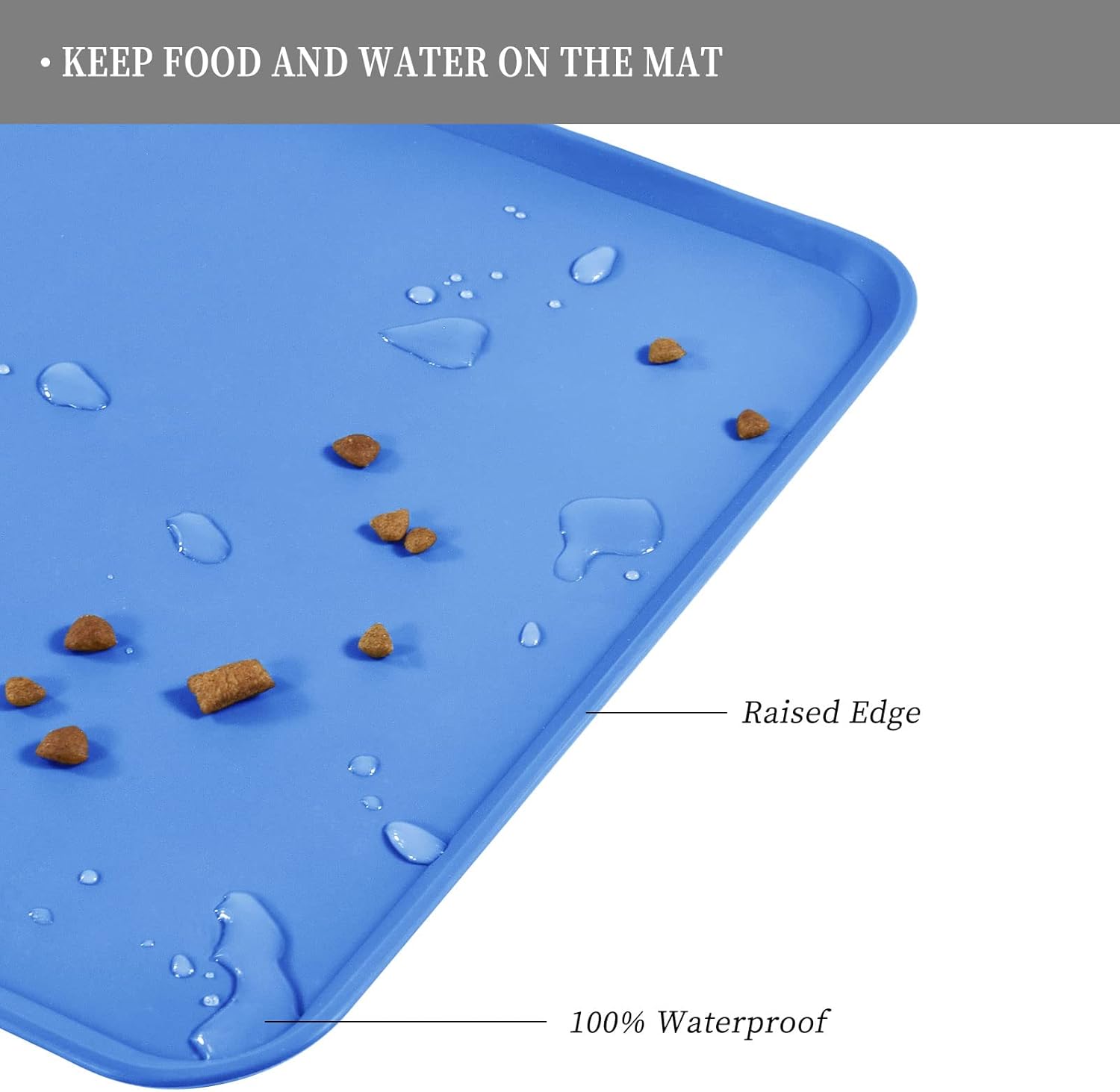 Waterproof Pet Feeding Mat with High Raised Edges, Heavier and Thicker Placemats for Cat Dog Water Bowl with BPA Free, Dogs Cats Food Mats for Messy Drinkers to Prevent Spill and Protect Floors