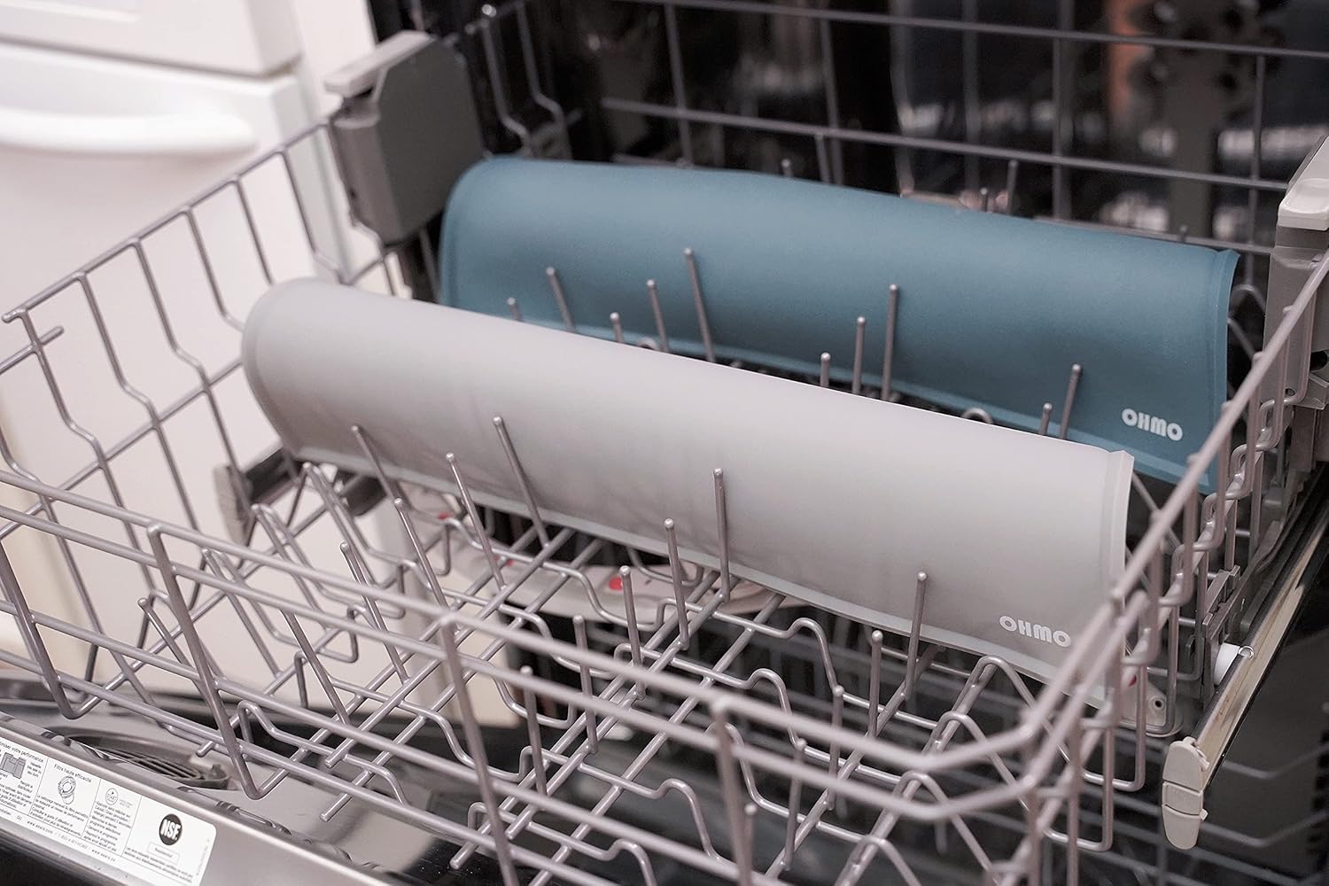OHMO - Cat Food Mat, Silicone Pet Feeding Mat for Floor Non-Skid Waterproof Dog Water Bowl Tray, Easy to Clean Pet Placemat (Teal, 18 * 9.8'')