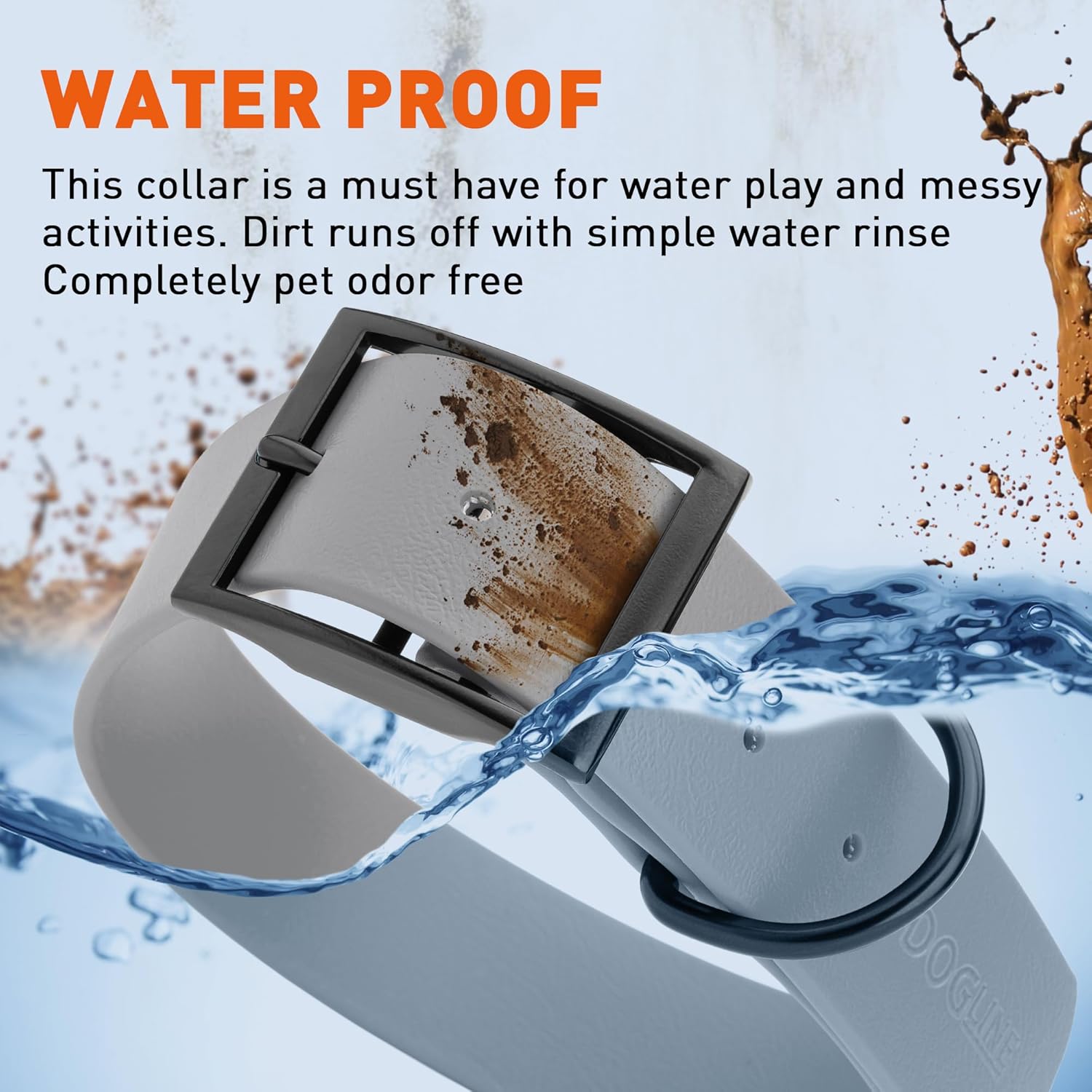 Dogline Biothane Waterproof Dog Collar Strong Coated Nylon Webbing with Black Hardware Odor- Proof for Easy Care Easy to Clean High Performance Fits Small Medium or Large Dogs, Battleship Gray