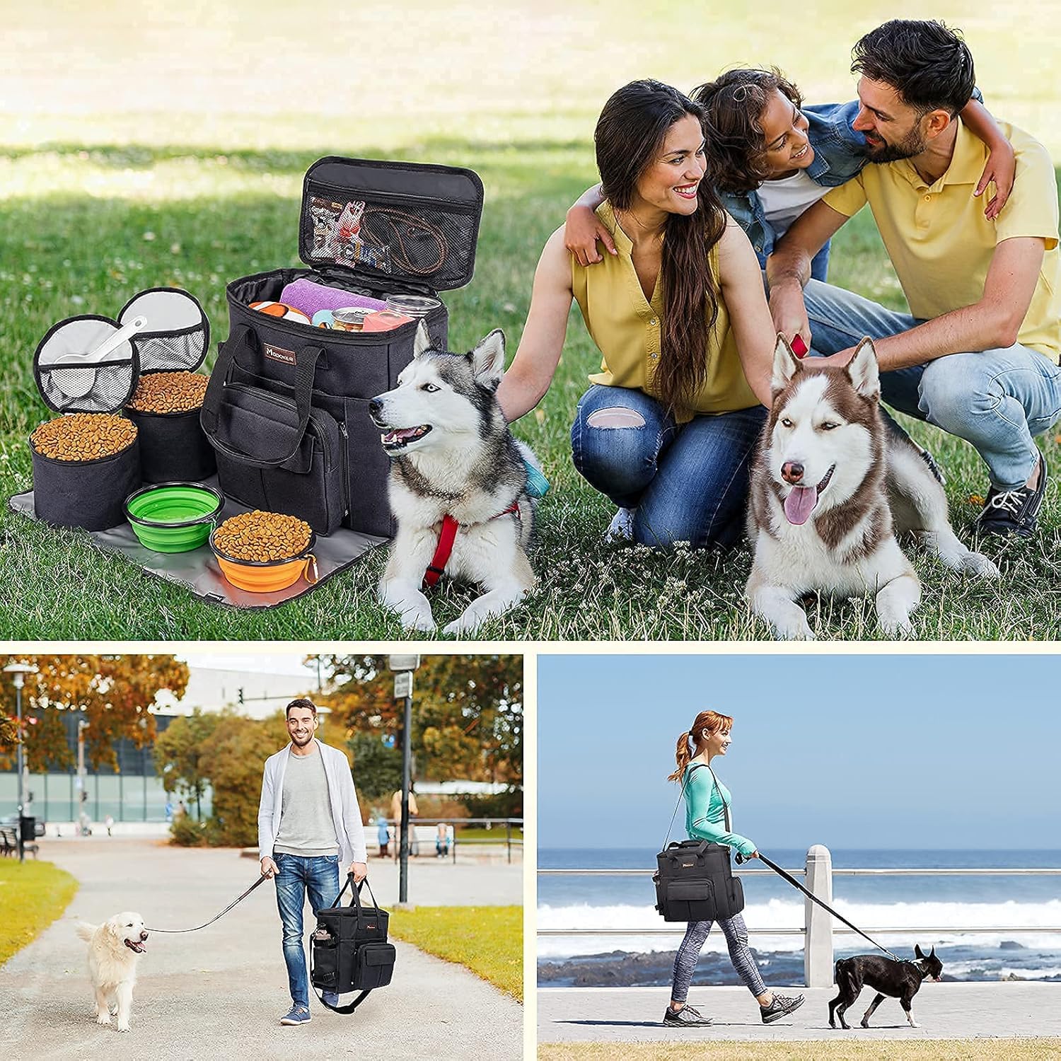- All-in-One Bag with Accessories: Come with 1 Dog Organizer bag,1 Dog backpack, 1 Padded shoulder strap, 1 Water-Resistant Placemat, 2 Fully insulated food containers, 2 Collapsible dog bowls( RANDOM COLOR ). All-in-one option for storing, organizing, and feeding. Traveling with this bag will ensure your pet feels comfortable no matter where you're headed