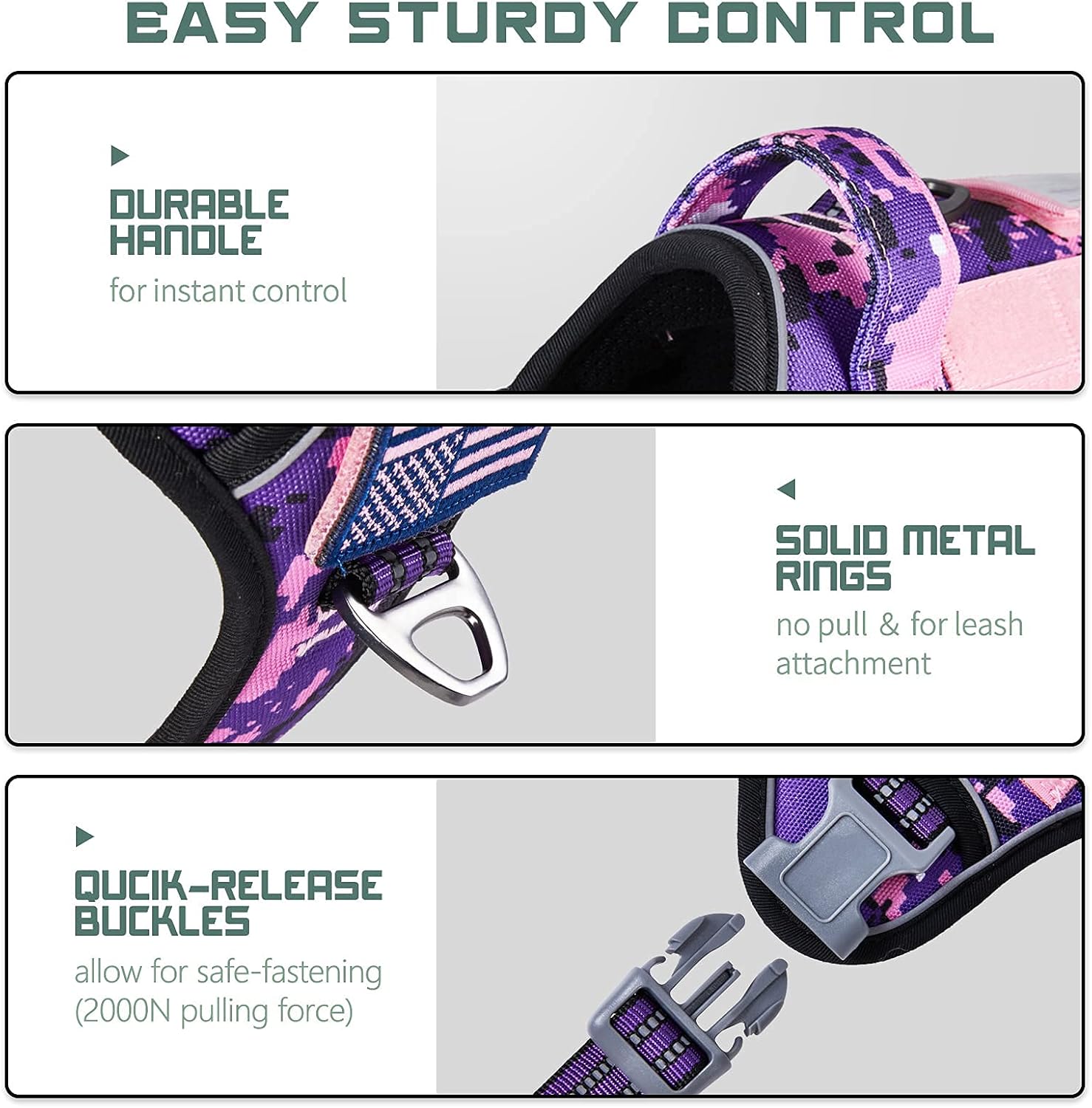 BUMBIN Tactical Dog Harness for Large Dogs No Pull, Famous TIK Tok No Pull Dog Harness, Fit Smart Reflective Pet Walking Harness for Training, Adjustable Dog Vest Harness with Handle Purple Camo L