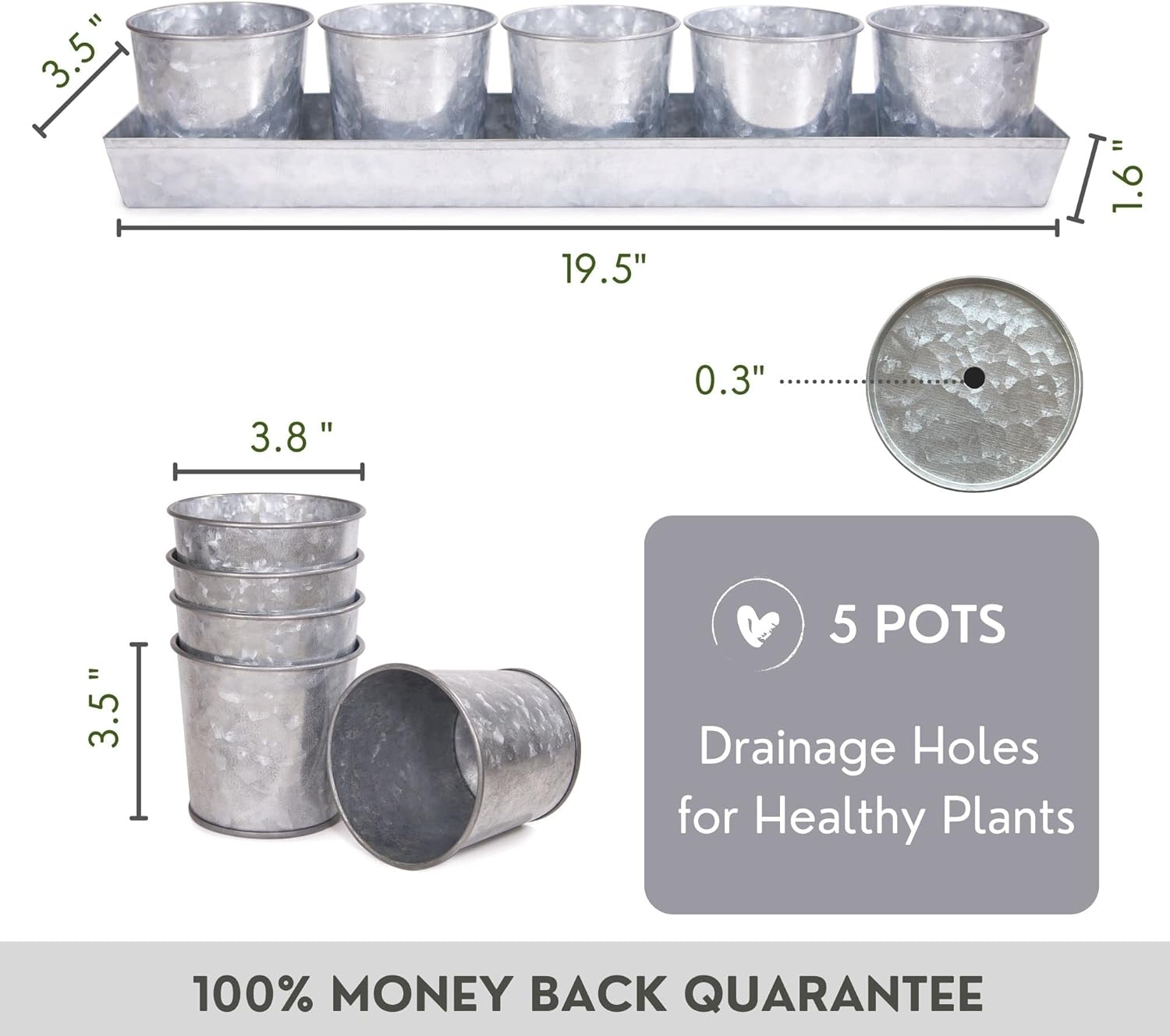 - STYLISH FARMHOUSE DECOR β This stylish and unique set of 5 galvanized garden pots combines practical design and superior functionality. Herb planters for indoor plants is a convenient addition to any chef's or home cook's kitchen