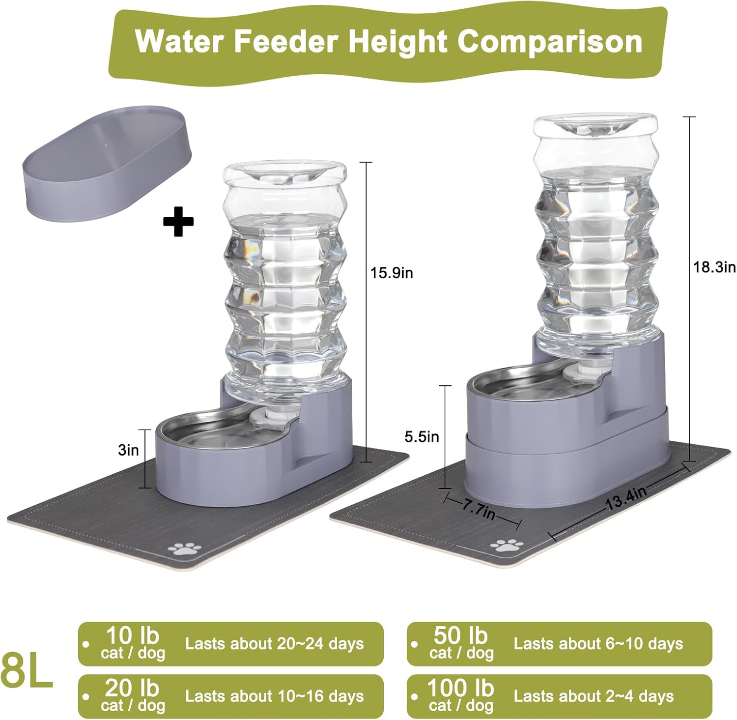 - 【Large Capacity】 The water dispenser works for small to big sized dogs and cats , it slowly refills water to bottle by gravity and extend the refill time, with the capacity of 8L, kitten's daily water supply would be sustained, perfect for pet owners travel or busy at work , you don't need to worry about your pet's water shortage.