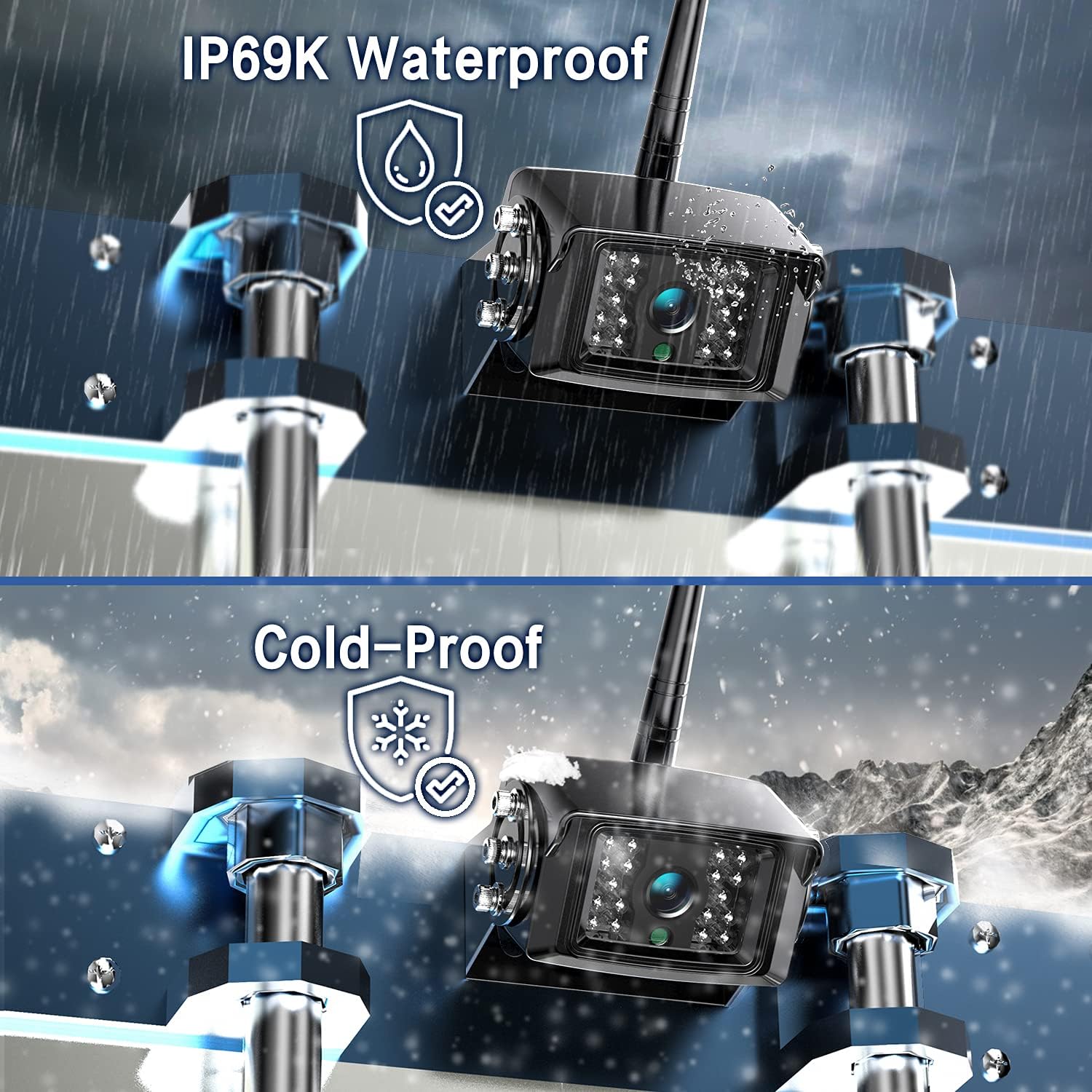- ăIP69 Waterproof & Loop RecordăWhether you're driving on a rainy-day, snowy-day, or foggy-day, ZEROXCLUB IP69K Waterproof Backup Camera can handle it. Buit-in loop record function, the wireless rear view camera will automatically overwrite the oldest recorded video when the memory card is full, protecting your safety and security while driving, backuping up and stationary.