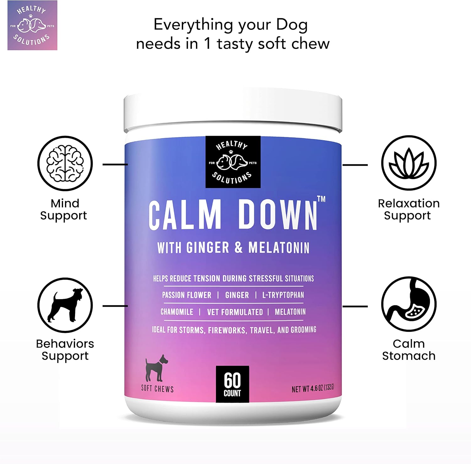 - ๐ธ CALMING CHEWS THAT TASTES LIKE A TREAT -- Veterinarian recommended to help reduce stress and tension while promoting rest and relaxation. -- 60 Soft Chews
