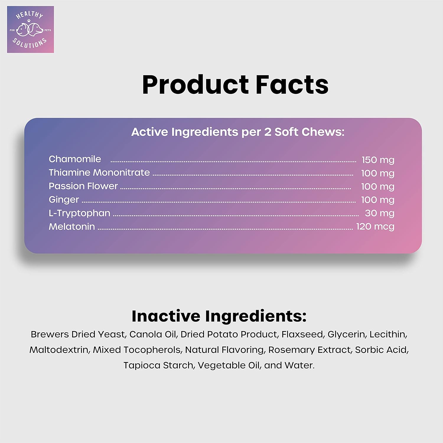 - ๐ธ VETERINARIAN FORMULATED -- with Melatonin, Chamomile, Passion Flower, Thiamine, L-Tryptophan, and Ginger to help soothe sensitive stomaches.