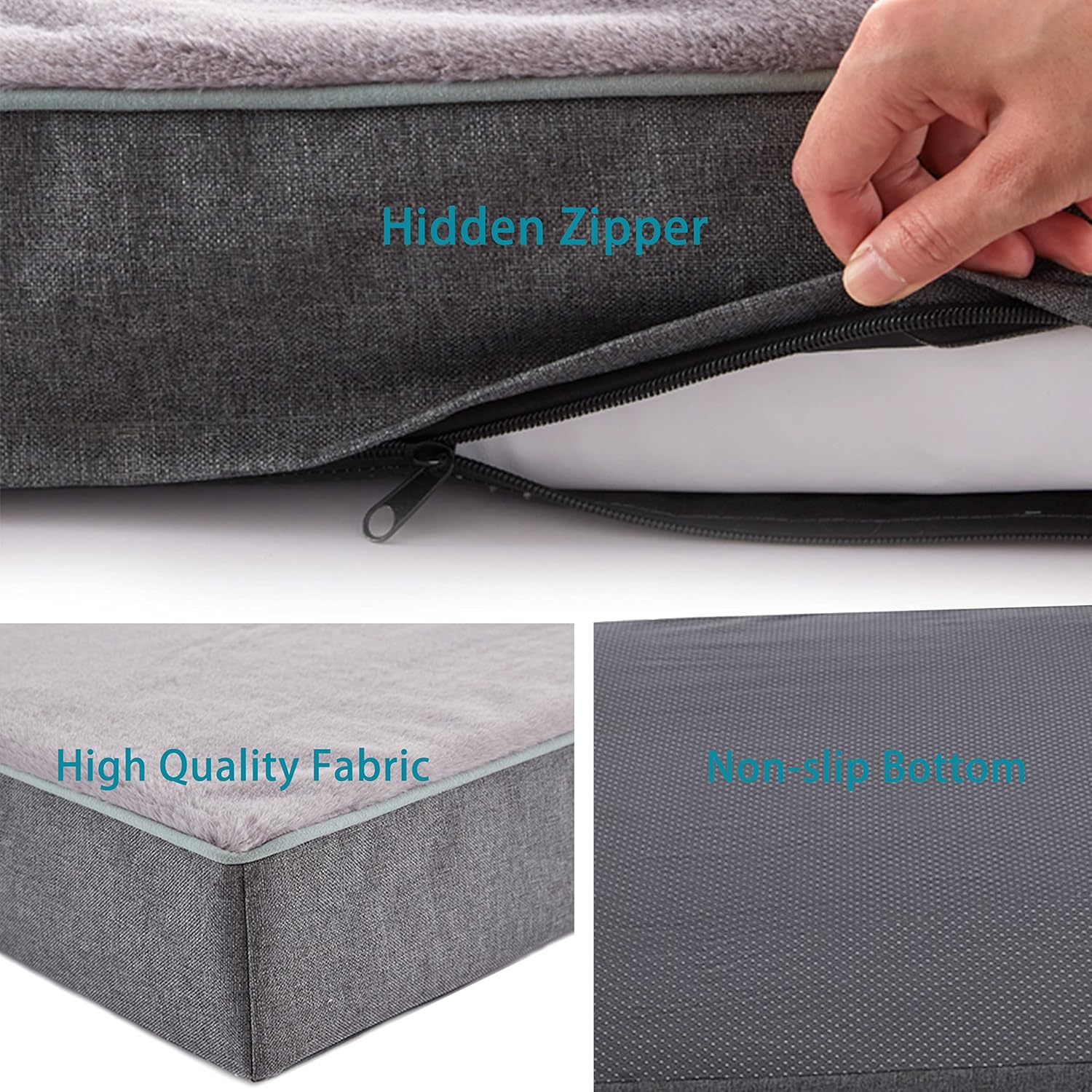 - Orthopedic memory Foam: 3” thick double foam distributes the weight of dogs,egg-crate cooling gel memory foam help relieve pressure, massage effect;The lower layer of high-density foam firmly supports the dog.Rest and relax in the dog’s bed to provide additional support for spine, muscles and joints.