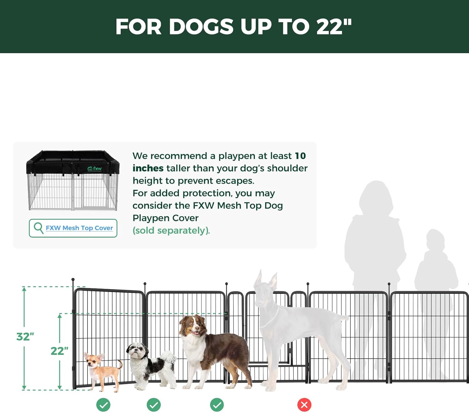 FXW Rollick Unleashed Dog Playpen for Indoor, Yard, RV Camping, 32 inch 32 Panels for Small and Medium Dogs, Black│Patented