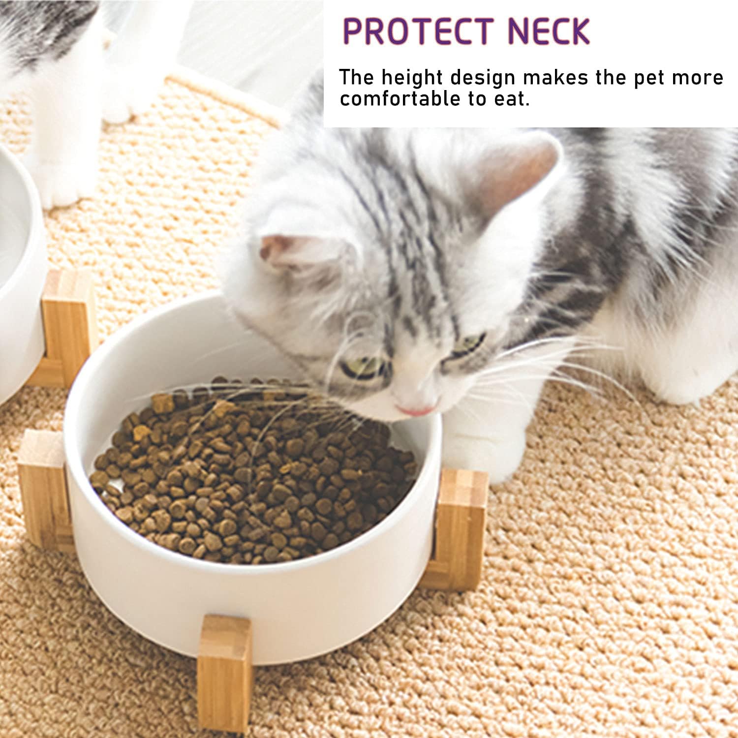 - EASY TO CLEAN CERAMIC - This easy clean dog bowl set is dishwasher proof, as well as easy to handwash and wipe down. With thick walls, these ceramic bowls for pets are sturdy, weighty yet not too heavy. Double Bowl Design:One dog bowl for food and one for water, Each ceramic cat bowl has a Unique wooden stand, raising the dishes closer to your pet for more comfortable eating