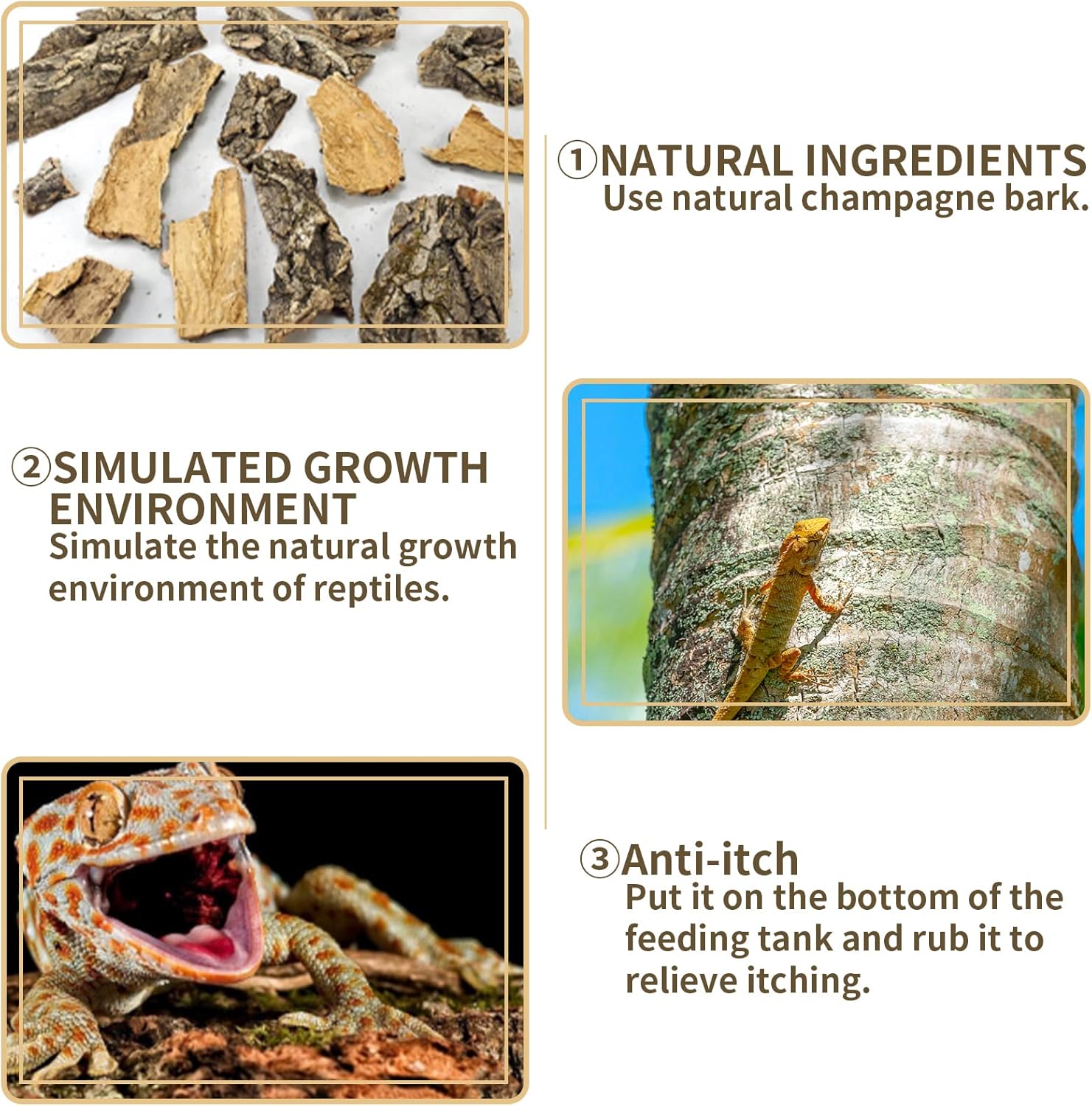 - [Multiple Functions]: Cork bark for reptiles can be used as a crawling mat for reptiles to protect pets from moisture. It can also be used as a decorative background for the tank to give pets a natural and beautiful habitat