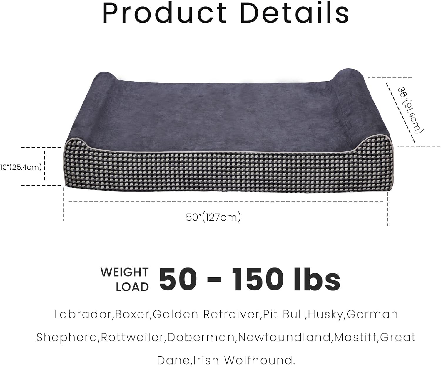 Laifug Orthopedic Memory Foam Extra Large Dog Bed with Pillow and Durable Water Proof Liner & Removable Washable Cover & Smart Design
