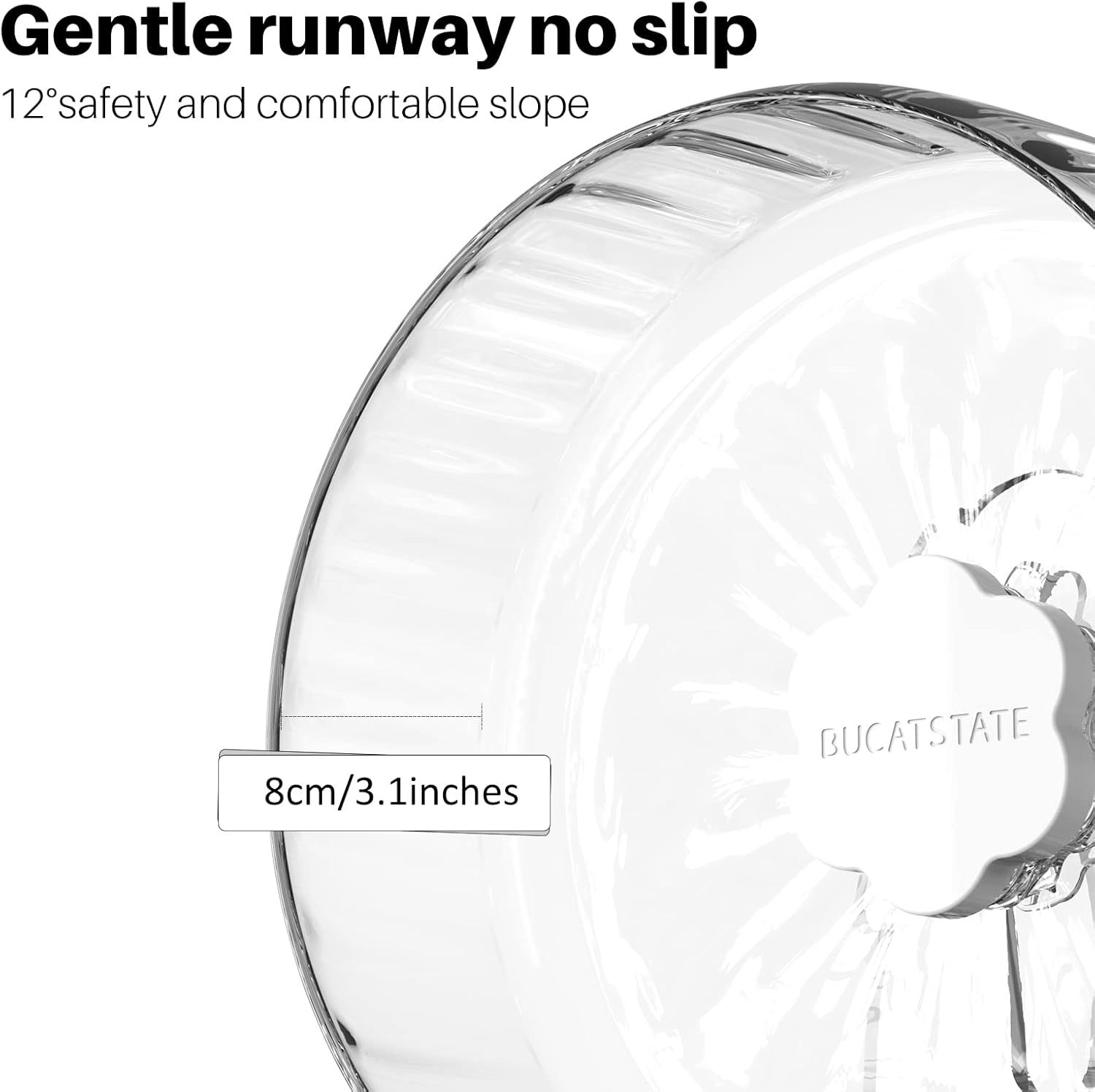 - Full transparent material, easy to clean, it emits dynamic light feeling during running,perfect for hamster habitat decor.