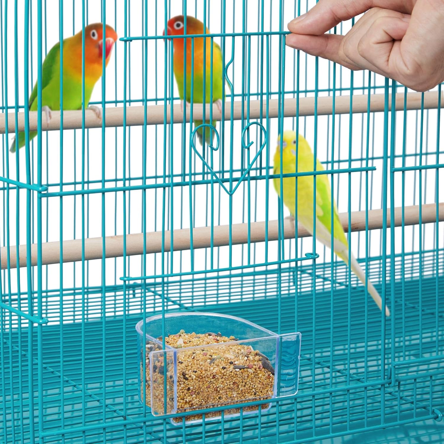 - Safety door design: The main door can be opened in two ways for you to take in or out different things, and you can use two supplementary doors for changing seeds and water without your parrots sneaking out unexpectedly