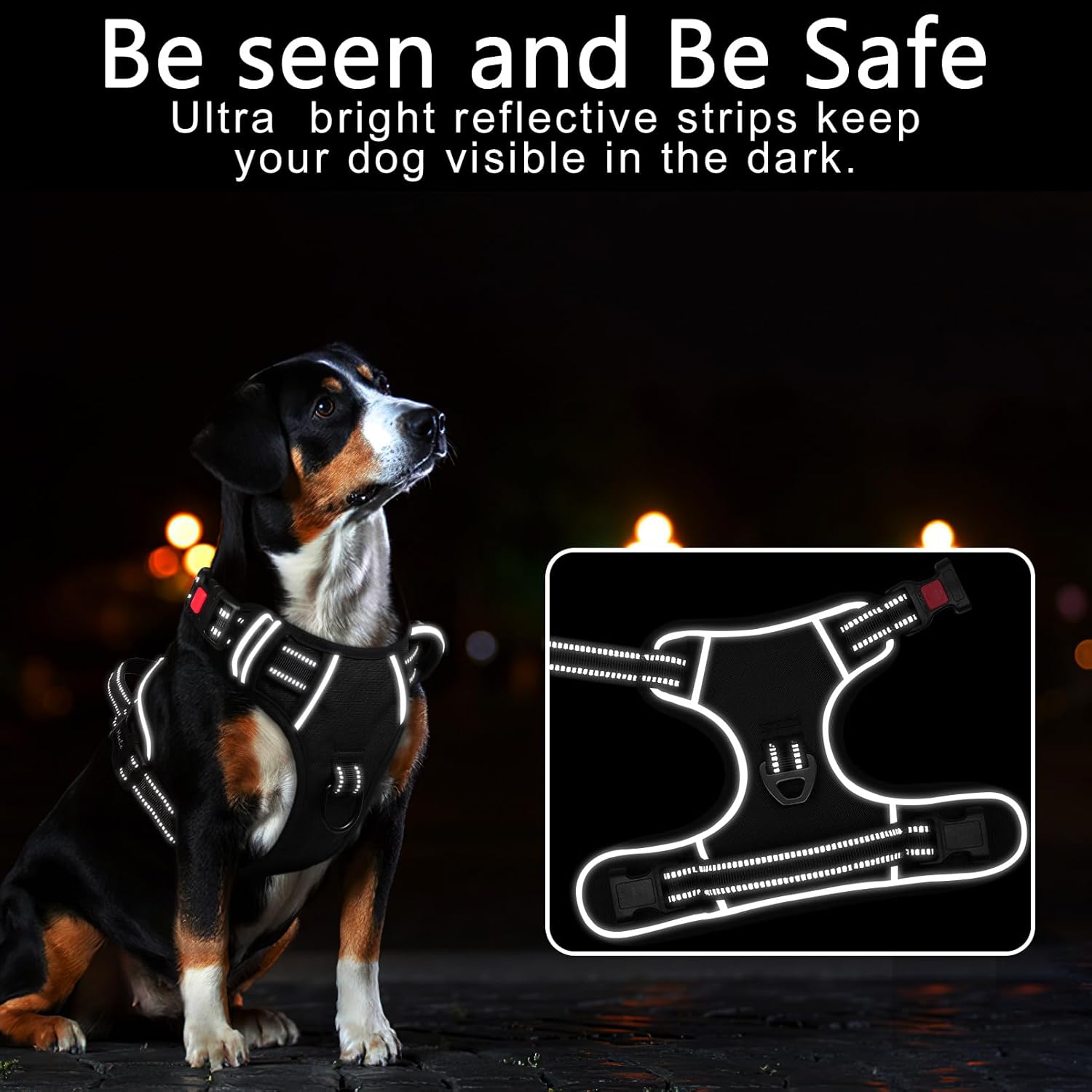 - 【MUCH SAFER & MORE COMFORTABLE】 Breathable mesh lining with soft sponge padding plate of puppy harness prevents injuries, giving extra comfort and protection with enhanced 1600D oxford fabric. The reflective material will be really nice when it gets dark. Also, your dog will be saw easily. This reflective material can make drivers have long time to react, which ensure your dog’s safety!