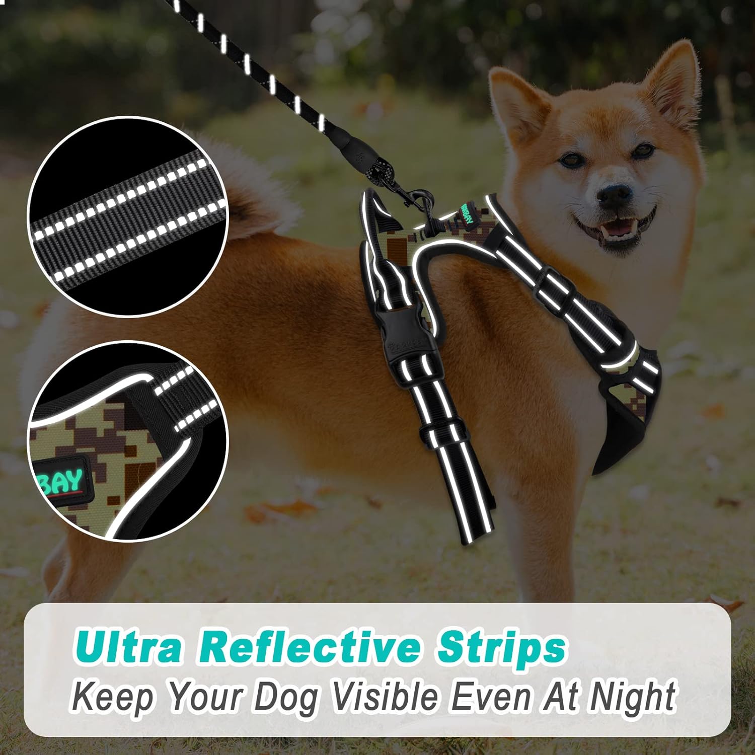 BARKBAY No Pull Dog Harness Large Step in Reflective Dog Harness with Front Clip and Easy Control Handle for Walking Training Running(Desert camo,XL)