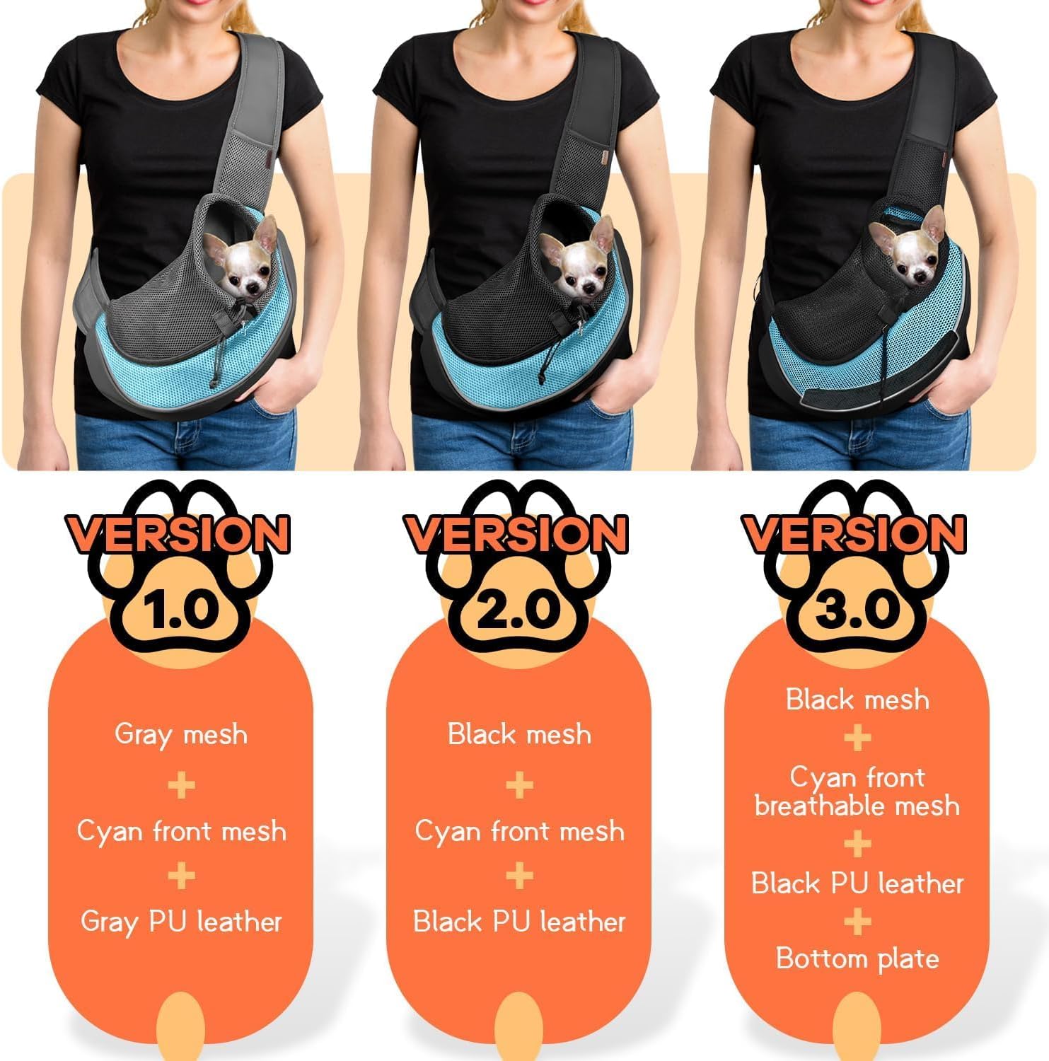 YUDODO Pet Sling Carrier for Small Dogs & Cats – Hands-Free Puppy Carrier with Safety Hook, Large Zipper Pocket, Soft Breathable Mesh, Adjustable Strap & Reflective Strip (Cyan 2.0 M)