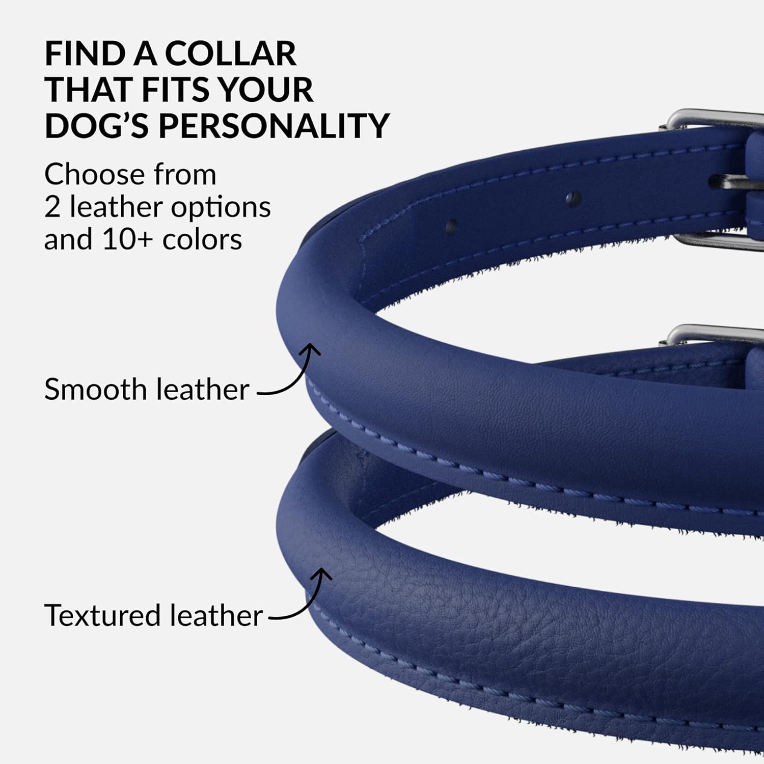 CollarDirect Rolled Leather Dog Collar, Soft Padded Round Puppy Collar, Handmade Genuine Leather Collar Dog Small Large Cat Collars 13 Colors (11-14 Inch, Deep Blue Smooth)