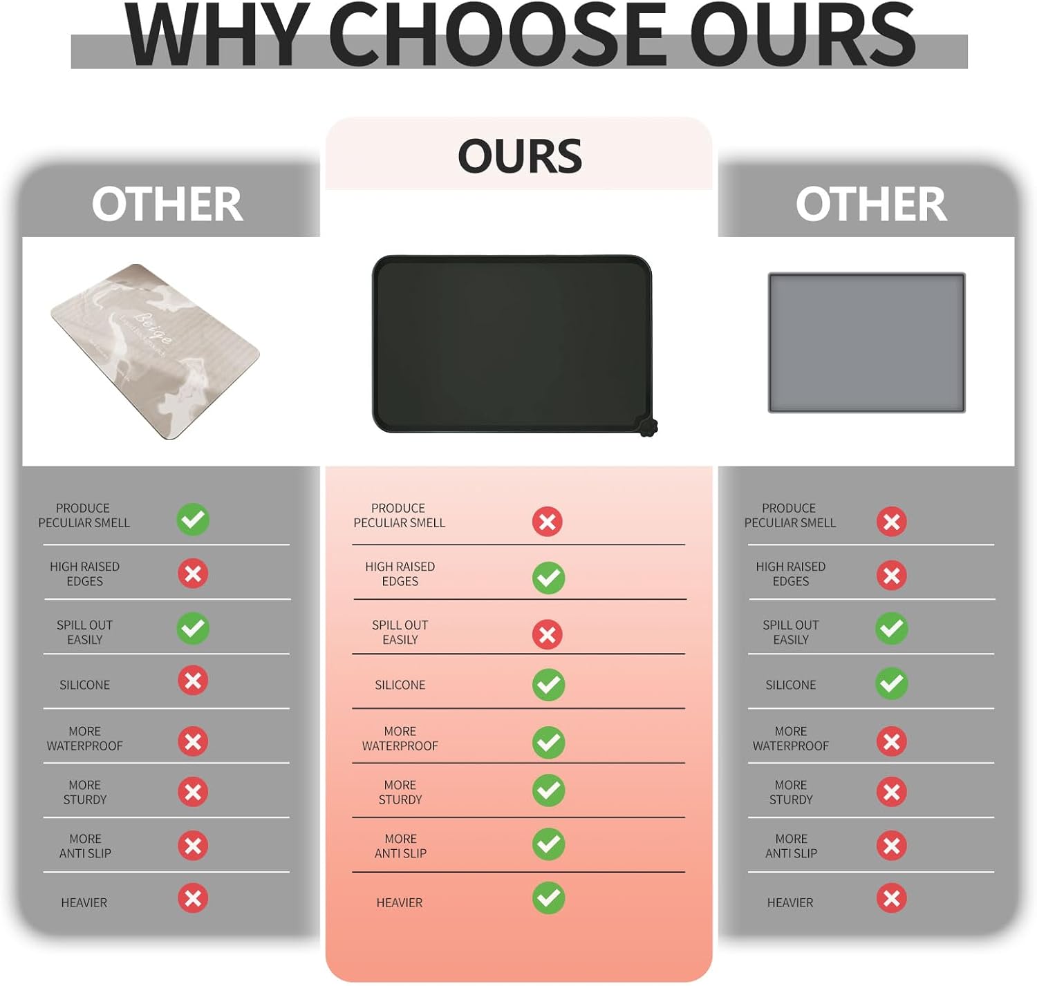 • Anti-slip design: our non-slip pet feeding mat ensures stability for your pet's bowl, preventing any water stains or spills on the floor. Enjoy peace of mind when feeding your pet, knowing that their food stays in place