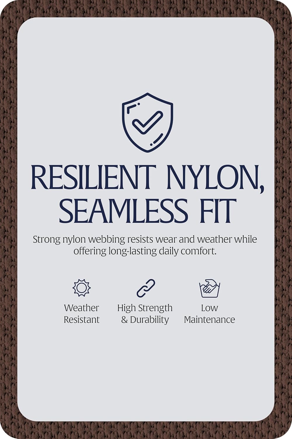 - Material : Brushed nickel hardware, poly/nylon webbing, poly fleece.