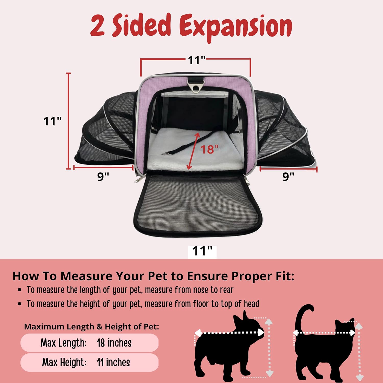 - TWO SIDED EXPANSION: Both sidewalls expand into a roomy extension, giving your pet room to turn around and sprawl out. The mesh lining also gives them a chance to see your face, keeping them calm and happy. This is especially helpful for older pets and pets with joint problems.