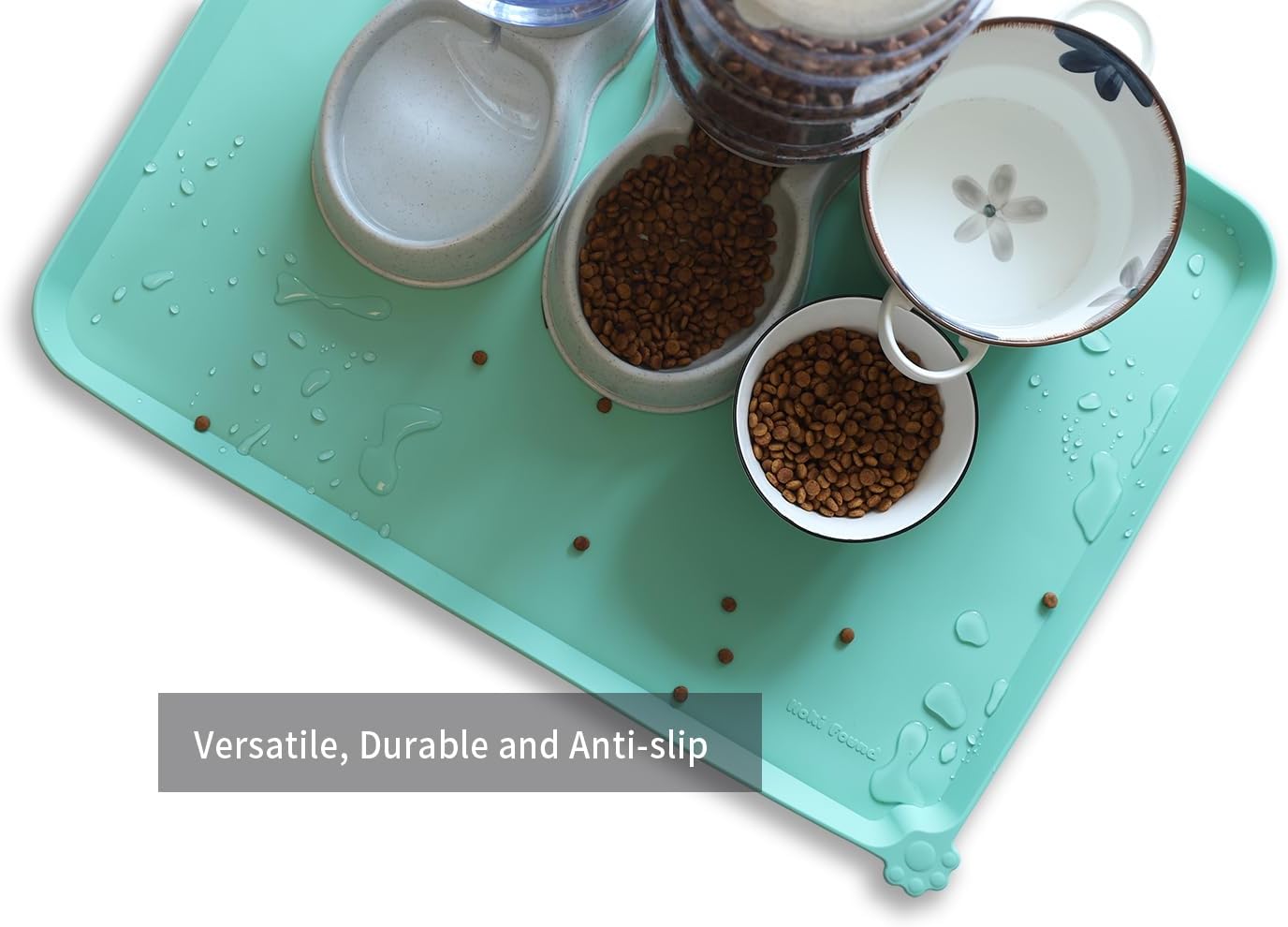 Hoki Found X-Large Silicone Non Slip Pet Food Mats - Silicone Pet Proof Bowls - Waterproof & Easy to Clean - For Dogs & Cats - Cool Mint