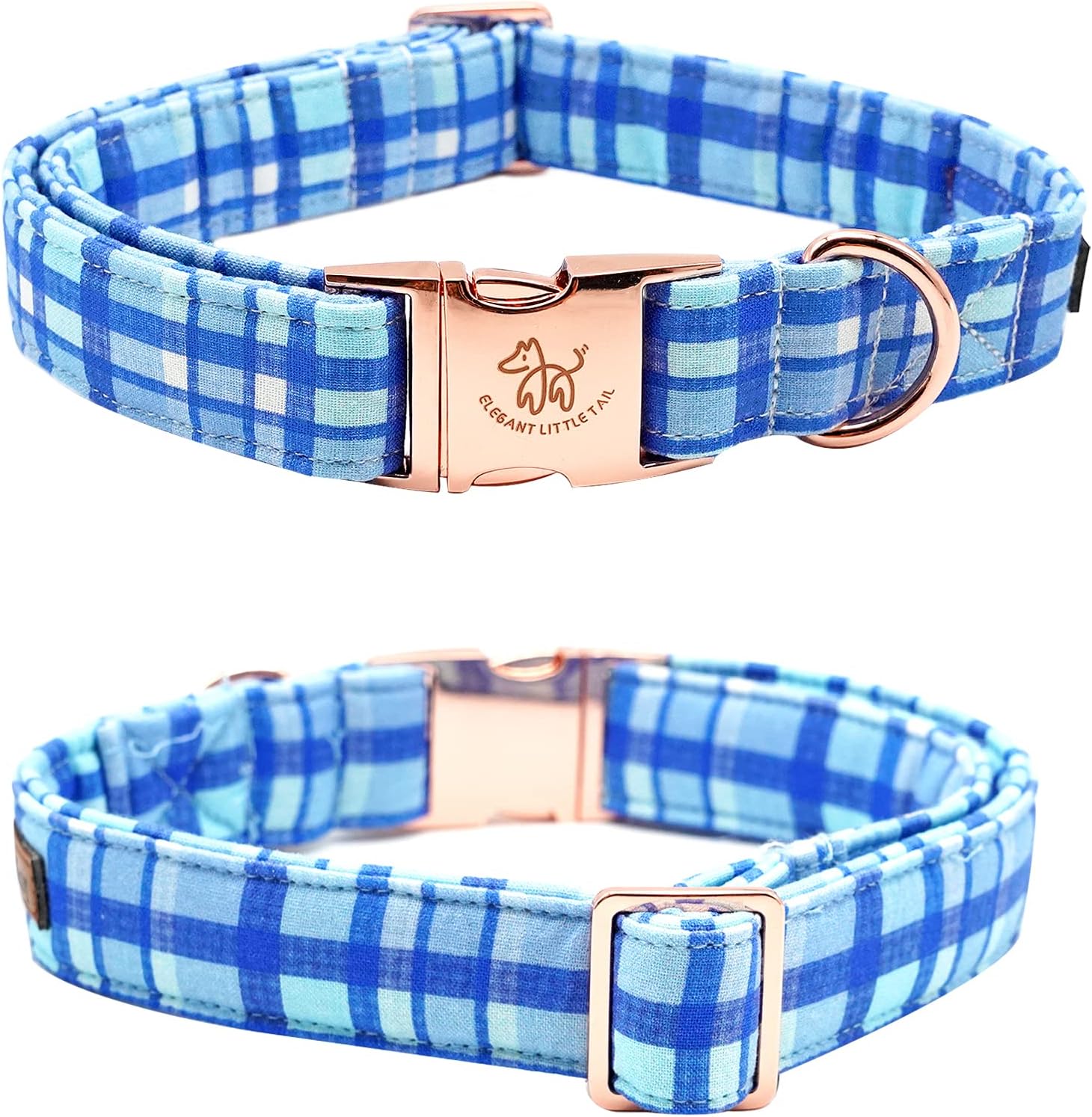 Elegant little tail Dog Collar with Bow - Blue Plaid Boy Dog Collar Cute Bowtie Pet Collar Adjustable Dog Collar for Small Puppy and Dog