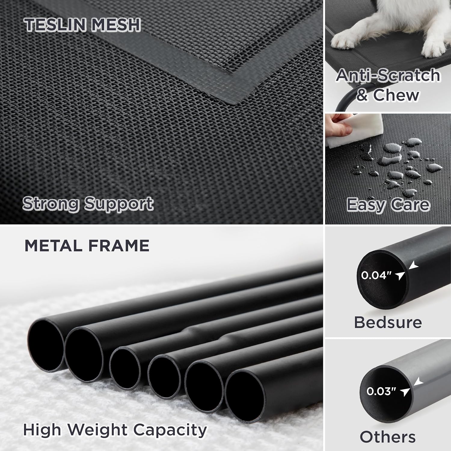 Bedsure Outdoor Elevated XL Dog Bed, Portable Indoor & Outdoor Cooling Raised Cot Pet Hammock Bed with Skid-Resistant Feet, Frame with Breathable Mesh, Black, 54 inches