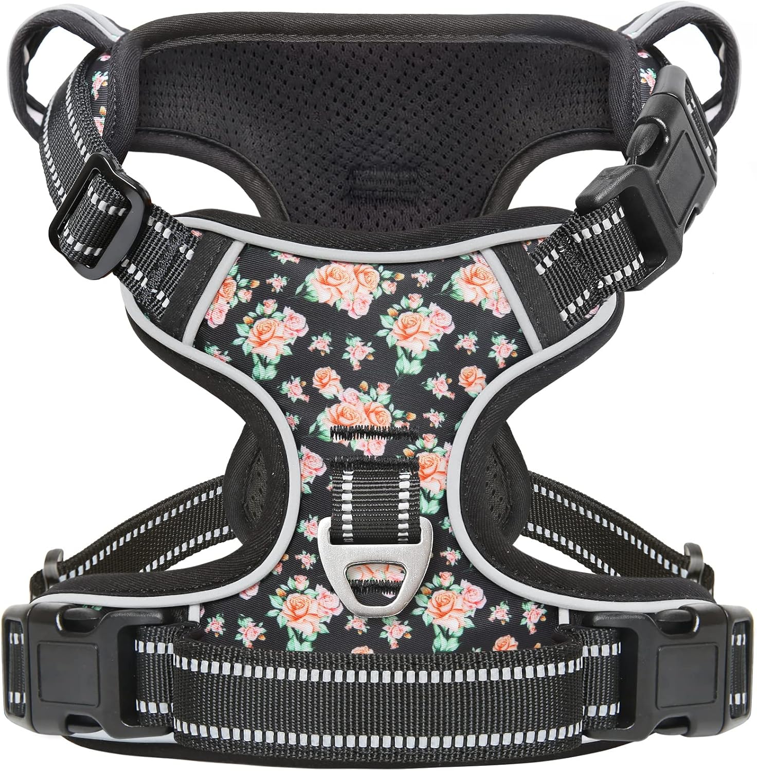 - 【4 WAYS ADJUSTABLE STRAPS】The fit of this pet harness can be completely customized for your pet using the slide adjusters at the chest and neck.You can use its 2 neck straps and 2 chest straps to create a Perfect Fit for your dog with some room of growth. No worries about slipping out or choking.