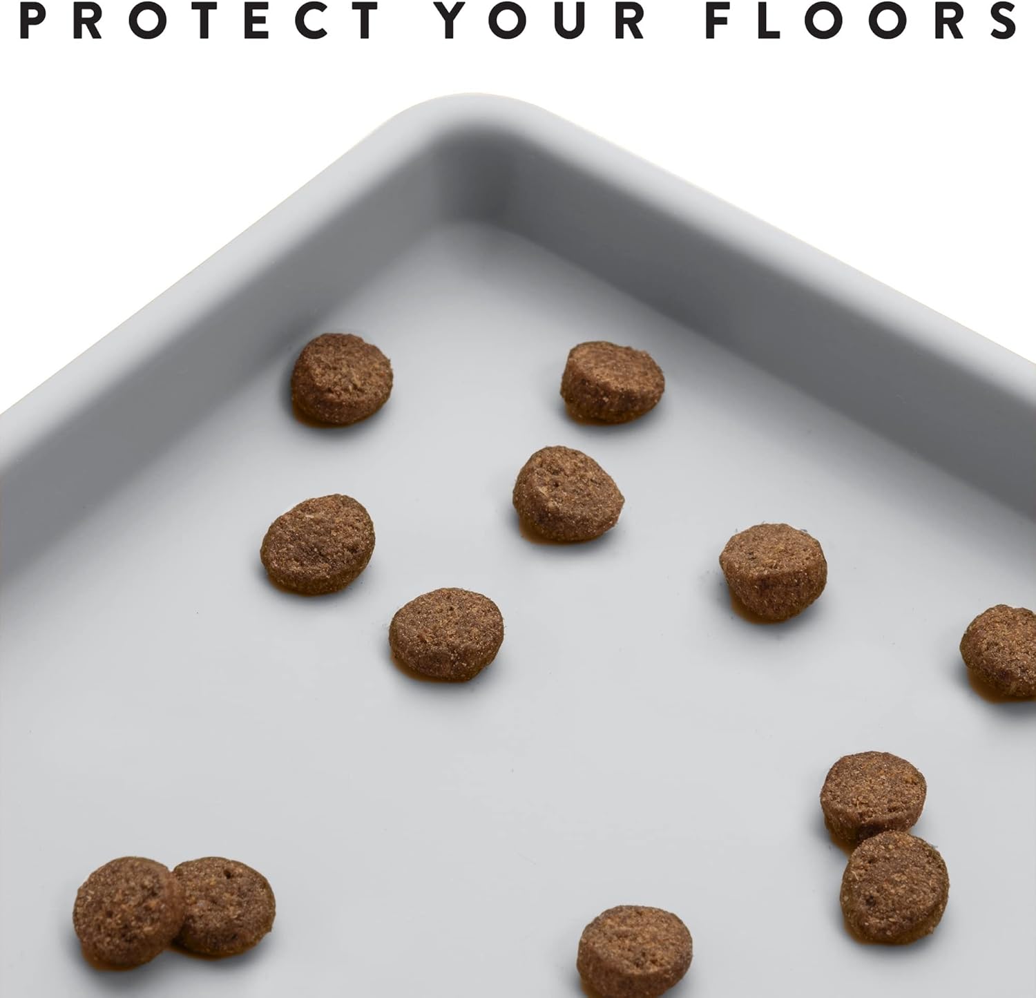 CatGuru Cat Food Mat, Small & Large Pet Feedingd Mat, 100% Waterproof Cat Mats for Food and Water, Silicone Mats for Pet Bowls, Non-Slip Placemat for Water Bowl or Fountain (Small, Silver)
