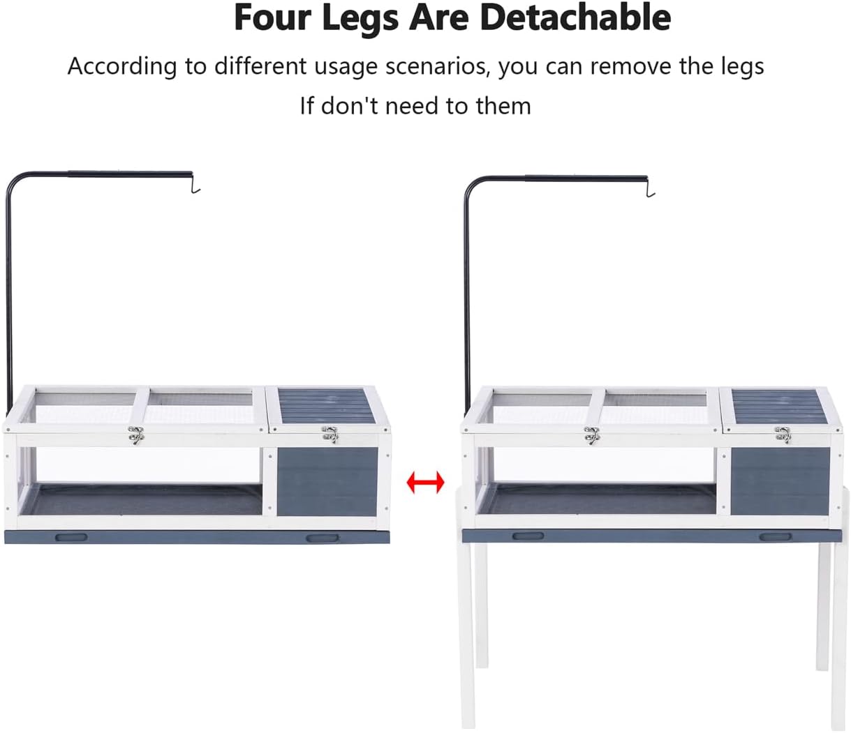 - ð¢Multifunctional Tortoise House: This cage is not only a tortoise cage. The bearded dragon could be a good habitat for other small reptiles, such as guinea, pigs, hamster, hedgehogs, rabbits, chicks, lizards, geckos, tortoise and other small animals etc. Detachable legs can be removed according to your needs, you can also put the cage directly on the table.