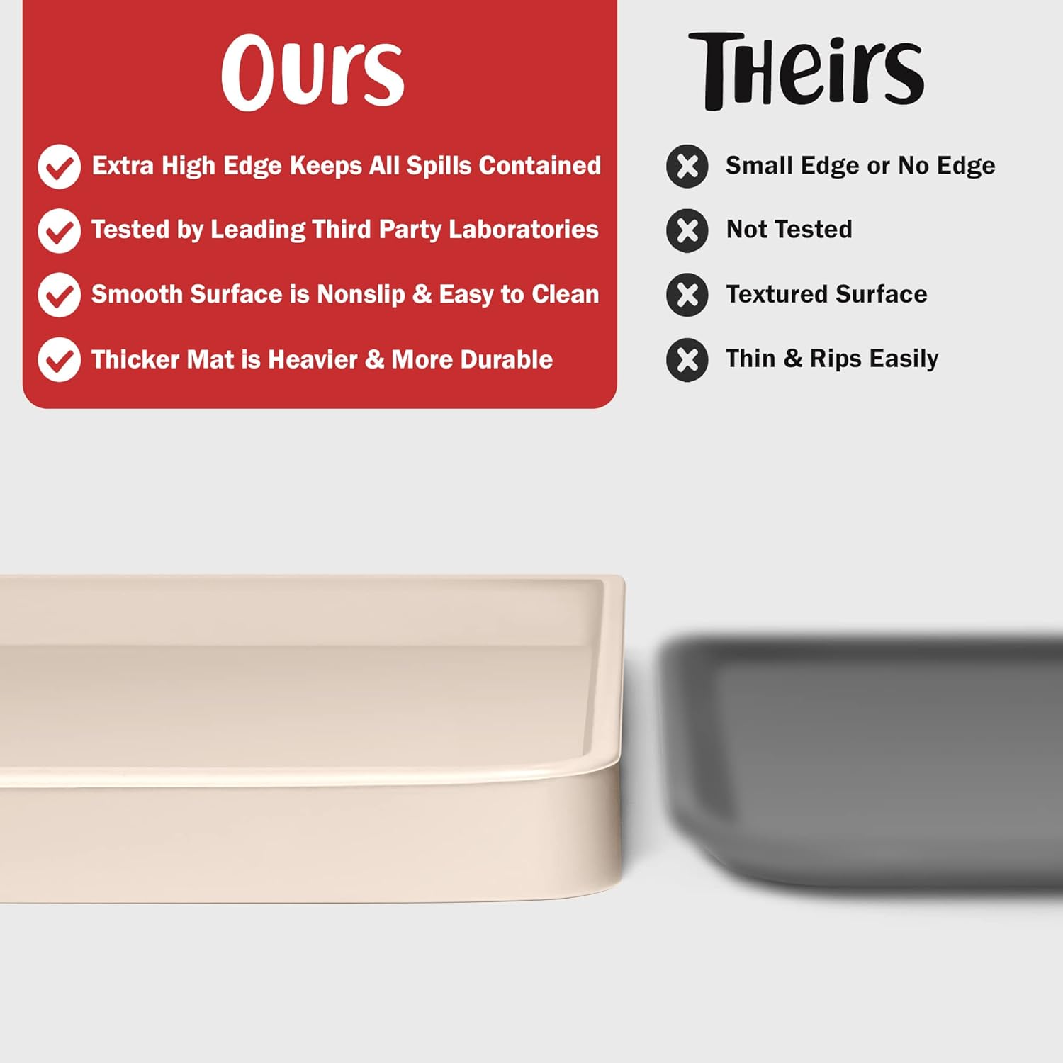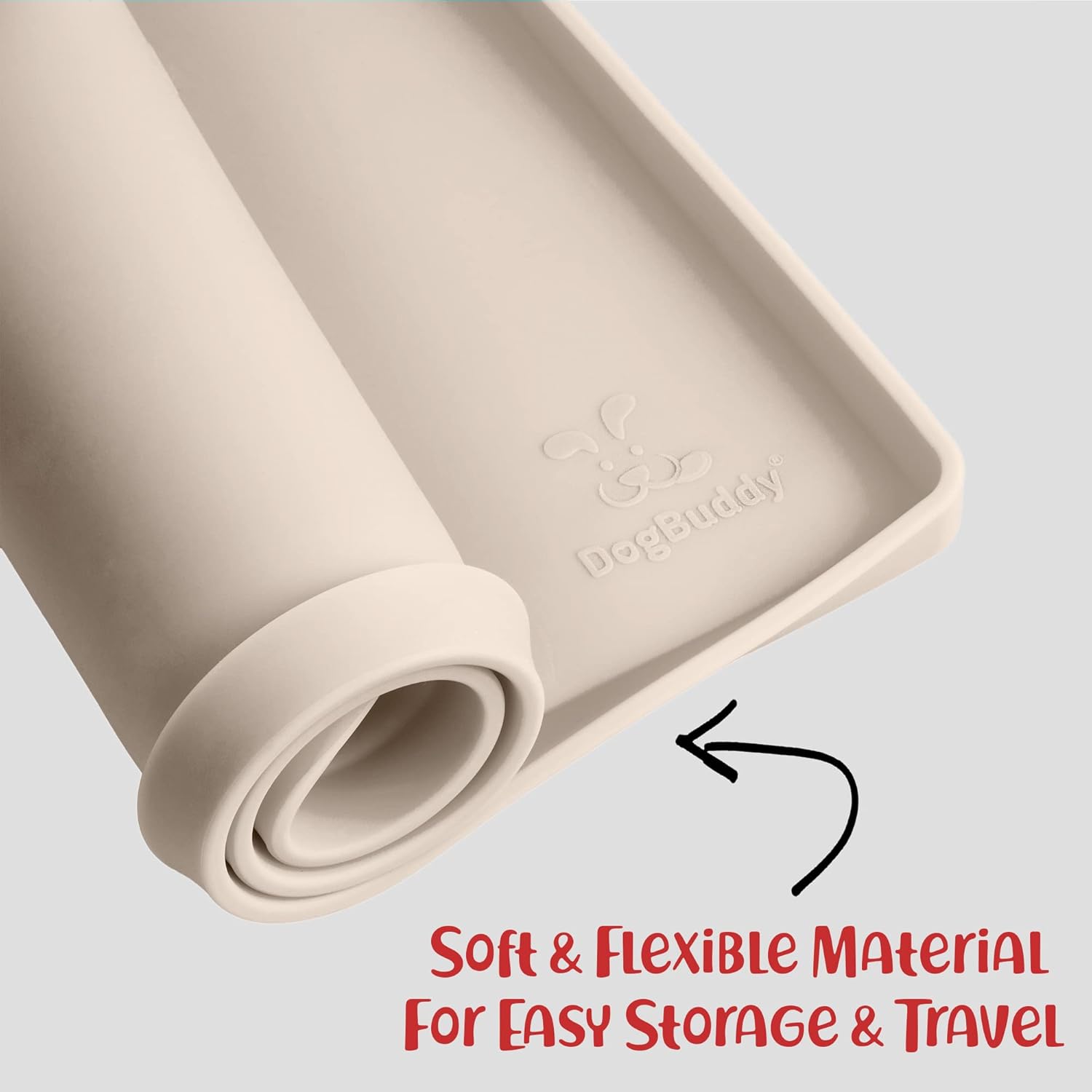 DogBuddy Waterproof Dog Food Mat with Raised Edge, Silicone - Nonslip Pet Feeding Mat for Floors (M: 21' x 14', Vanilla)