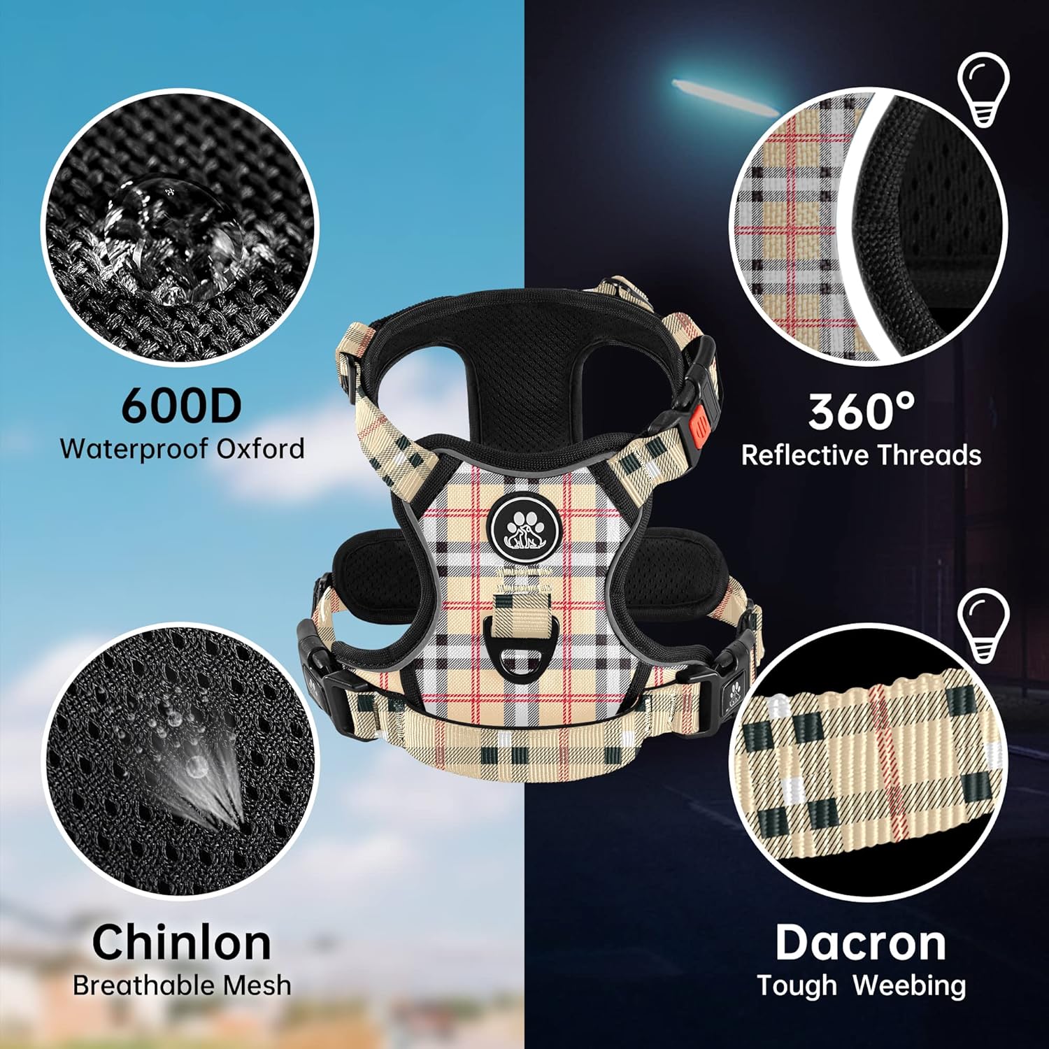 NESTROAD No Pull Dog Harness with Leash, Reflective No Choke Pet Vest Harness,Adjustable Soft Padded Dog Harness with Easy Control Handle for Large Dogs(Checkered Beige,Large)