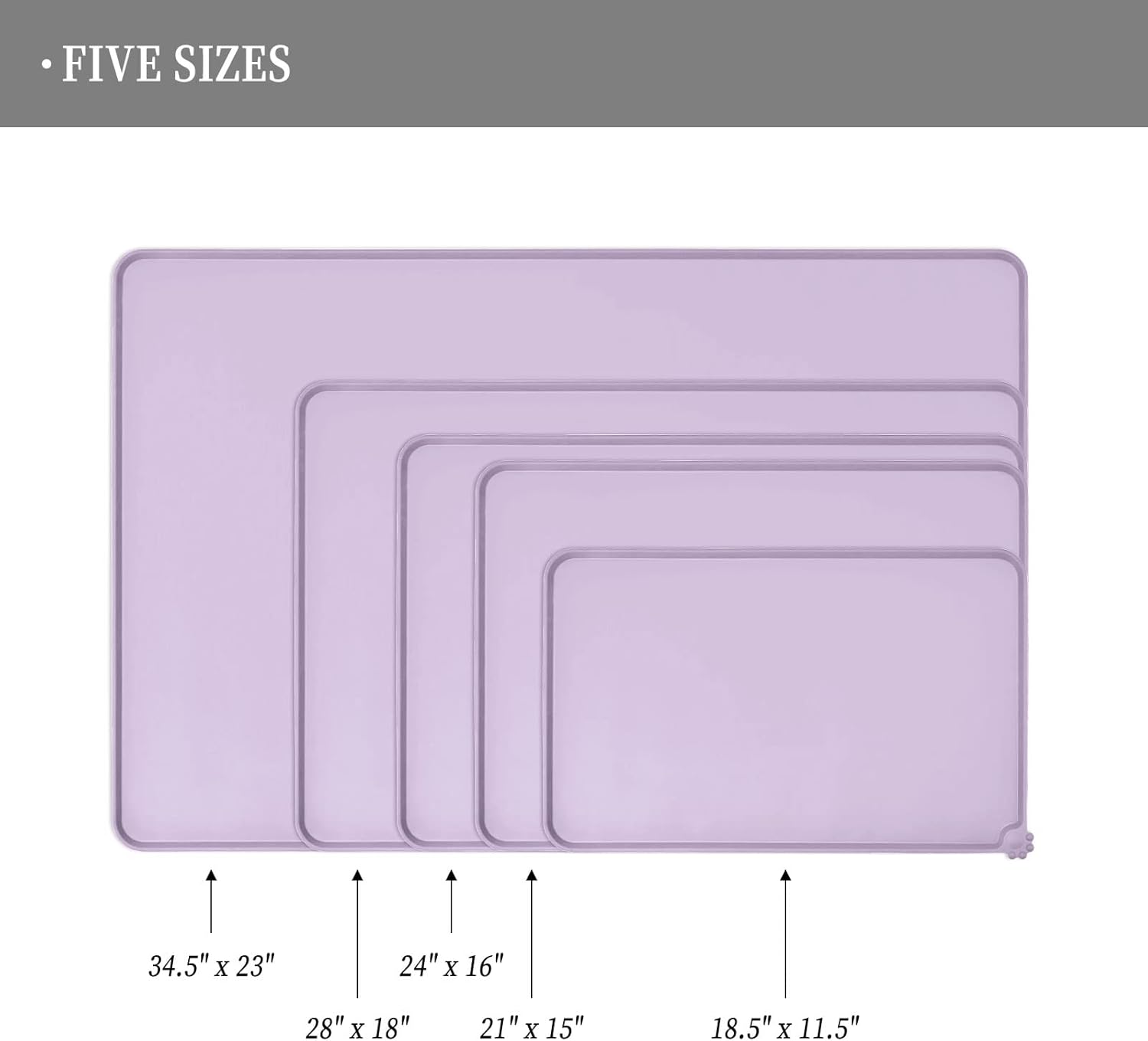 • Various sizes available: our pet mats come in 5 different sizes - 18.5" x 11.5", 22" x 14", 24" x 16", 28" x 18", and 32" x 24". Suitable for all kinds of pets, from puppies to large pets, choose the perfect size for your furry friends and avoid messy spills at mealtime