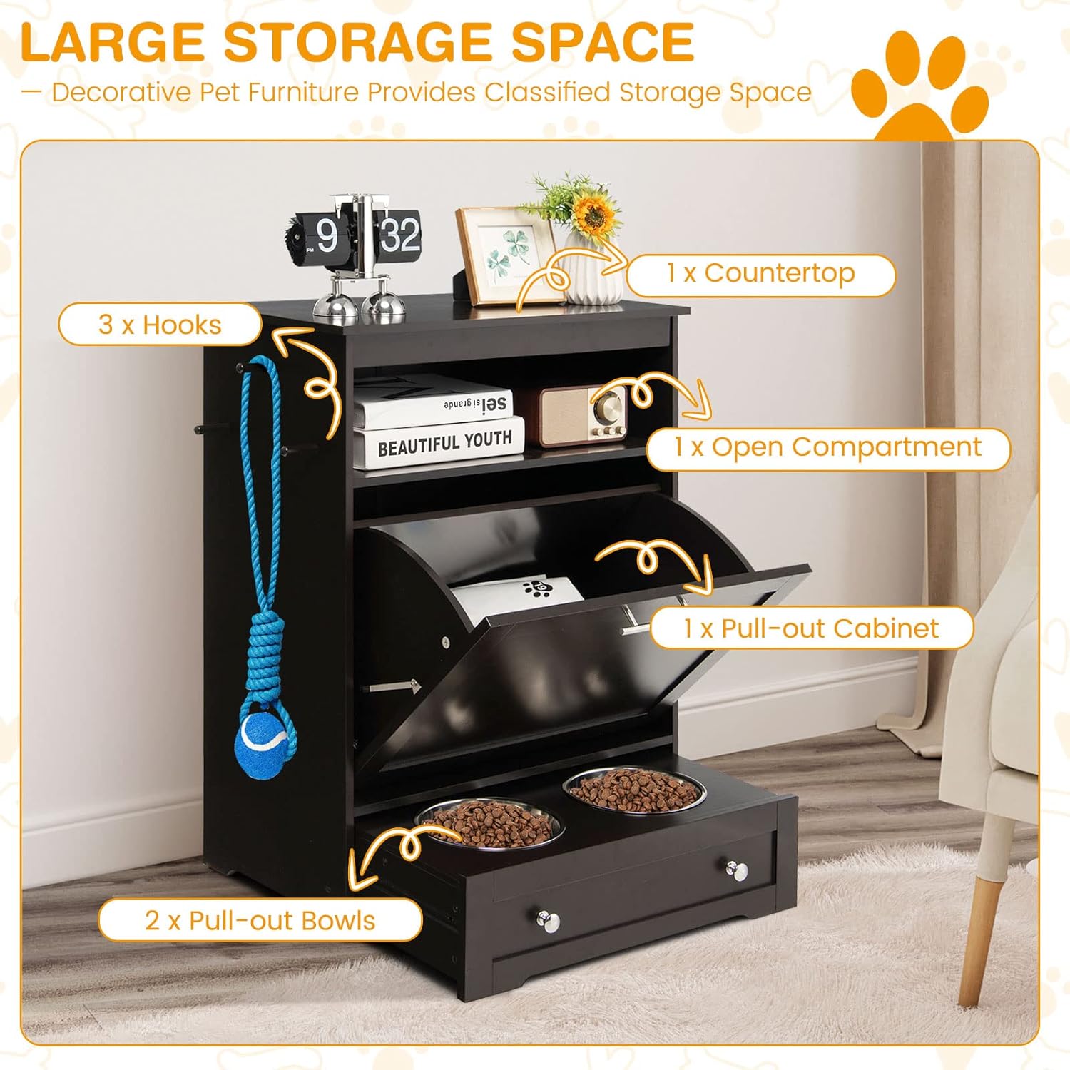 Tangkula Pet Feeder Station, Dog Food Storage Container With Double Pull Out Bowls, Food Toy Organizer Cabinet, Feeding Station Furniture for Dogs Cats Feeding & Watering Supplies (Brown)