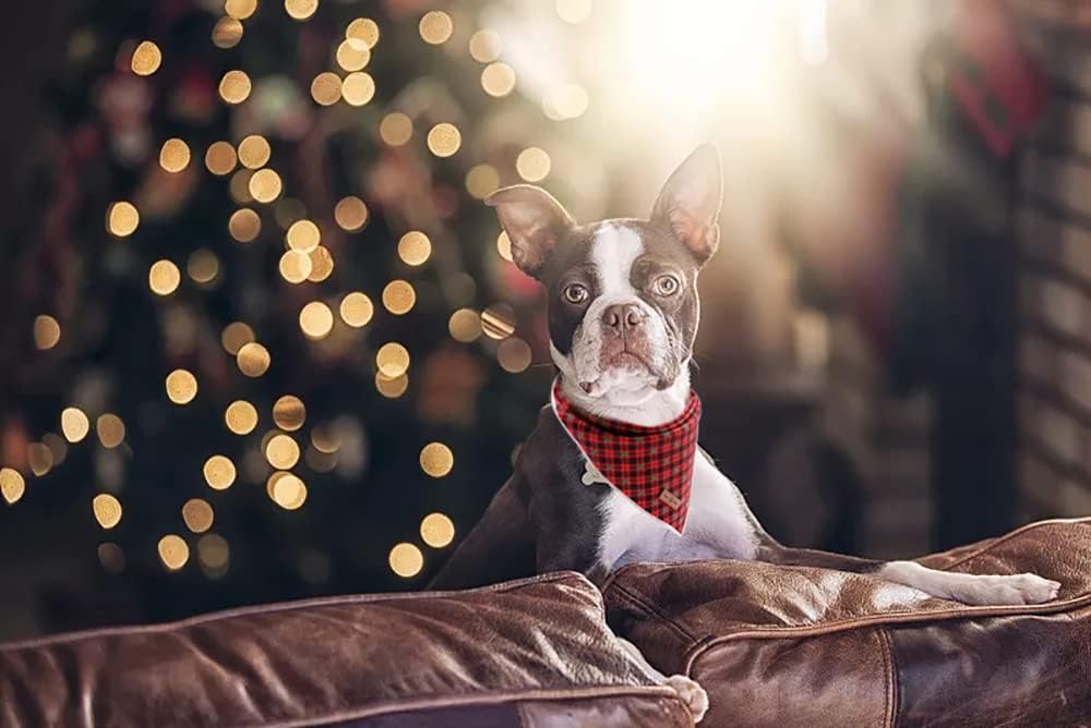 Lionet Paws Reversible Washable Cotton Dog Bandana - Red & Tree Patterns, Adjustable Square Kerchief for Small to Large Dogs