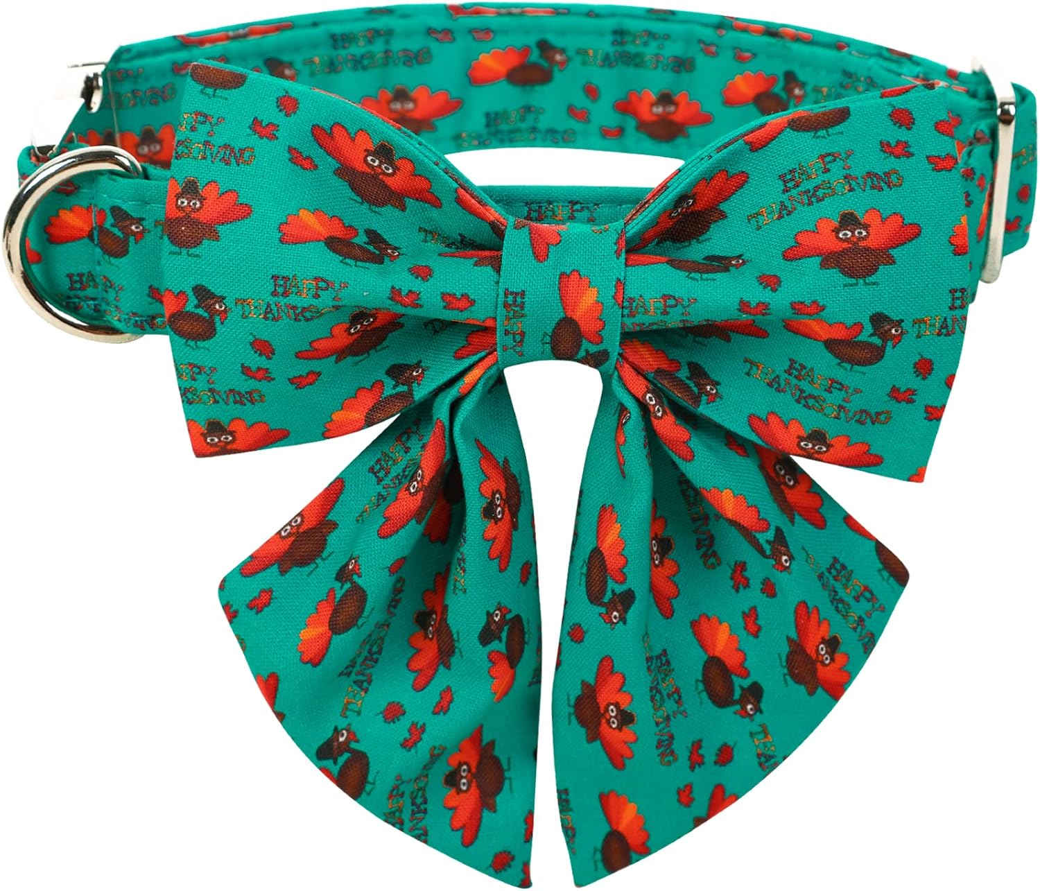 Lionet Paws Thanksgiving Day Dog Collar with Bowtie, Dog Sailor Bow Collar with Metal Buckle for Dogs, Adjustable Comfortable Dog Collar Girl Gift, M, Neck 13.5-22 in
