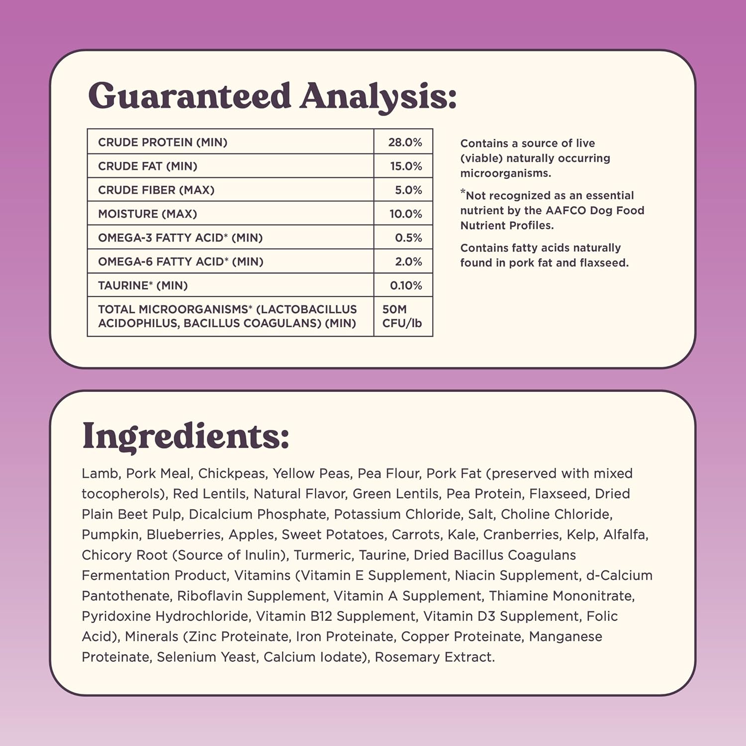Brave Probiotic Dog Food Dry, Lamb, 18lb Bag, Natural Grain Free Adult Kibble for Digestive Health Made with Real New Zealand Lamb, 20 Plant Based Superfoods, Corn, Poultry & Soy Free