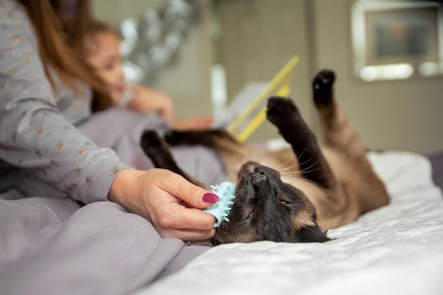 - 【Soft Bristle Brush For Your Cat Skin】Designed with purrpose. The cat finger brush bristles are soft and flexible to effectively removes cat loose hair, reduce cat shedding, and encourage healthy skin. Perfect for shedding and massaging your cat without scratching your pet's skin, even the sensitive skin. Our hair removal massaging cat comb and brush offers gentle grooming and massage for your indoor cat.