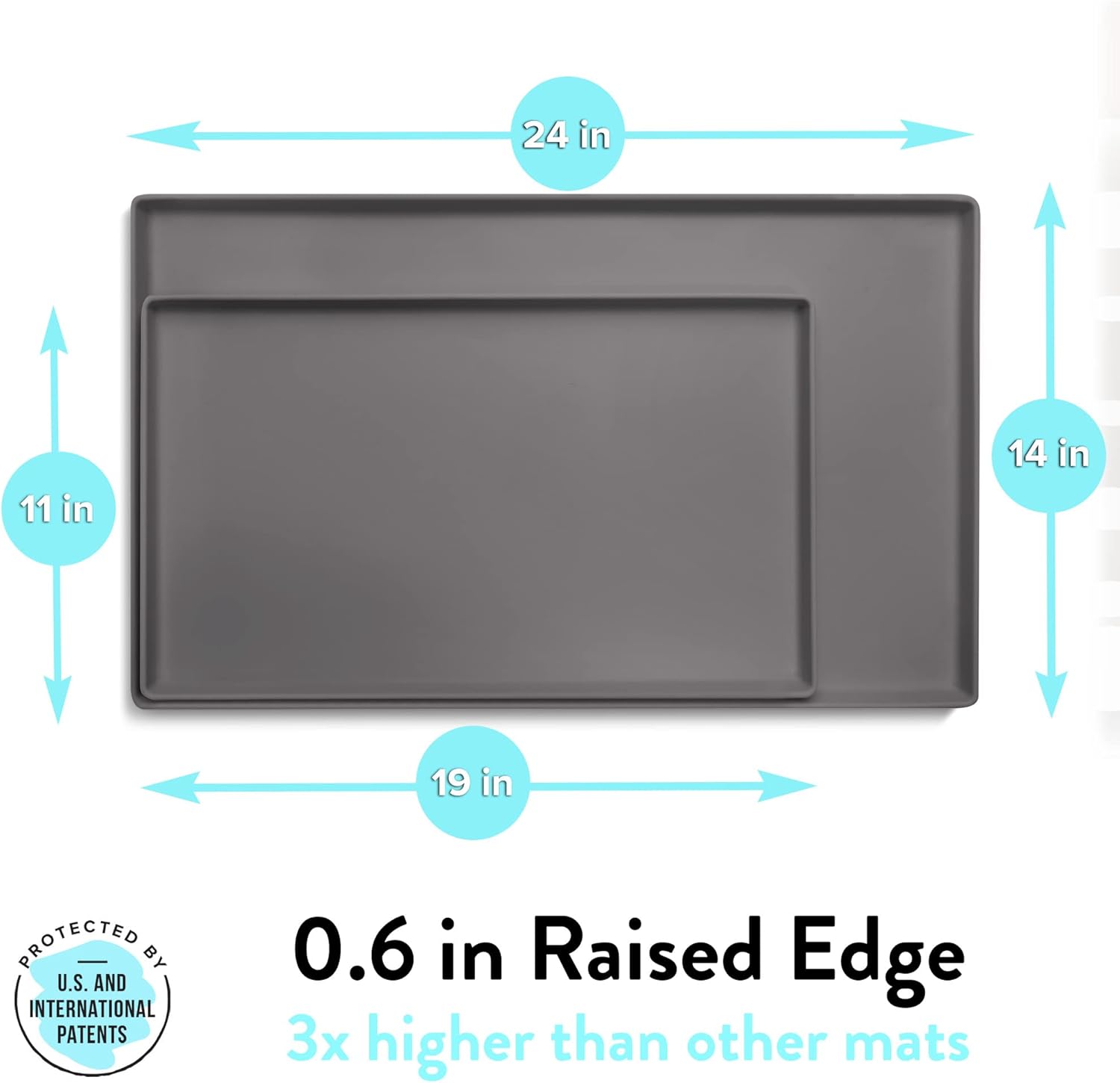 - ⭐️ EXTRA HIGH EDGE: CatGuru Cat Food Mat is the only cat food mat on the market that can hold up to 5 cups of spilled food and water due to the raised outer edges. This heavy duty pet food mat is specially designed for messy eaters. Use this cat mat under cat bowls, cat water fountain or cat feeder to protect your floors.