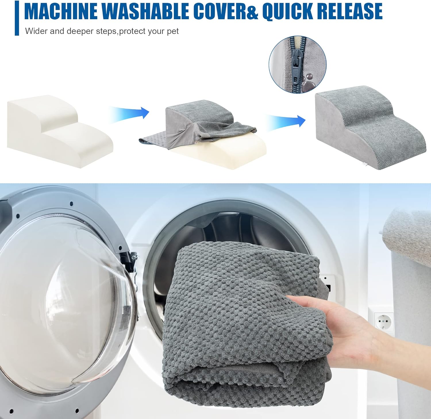 - Double Sided Anti Slip: The dog steps cover is made of corduroy with greater friction than other fabrics, which provides extra grip while in use, the bottom features nonslip rubber dots, preventing pets from sliding while climbing, providing pets with double safety protection