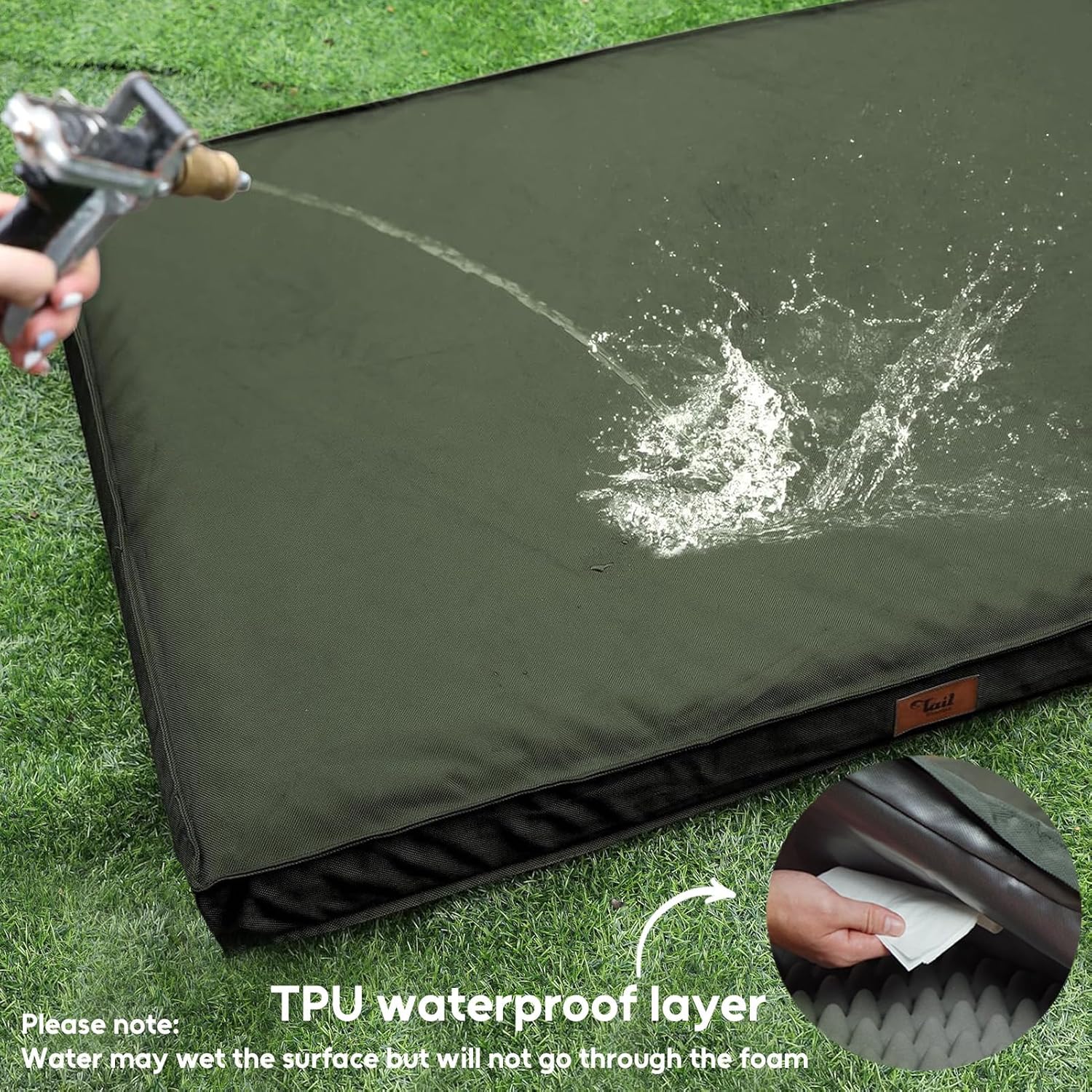 Outdoor Extra Large Dog Bed, Waterproof Dog Bed for Large Dogs, Orthopedic Egg Foam Pet Bed with Washable and Removable Oxford Cooling Cover, Dark Green