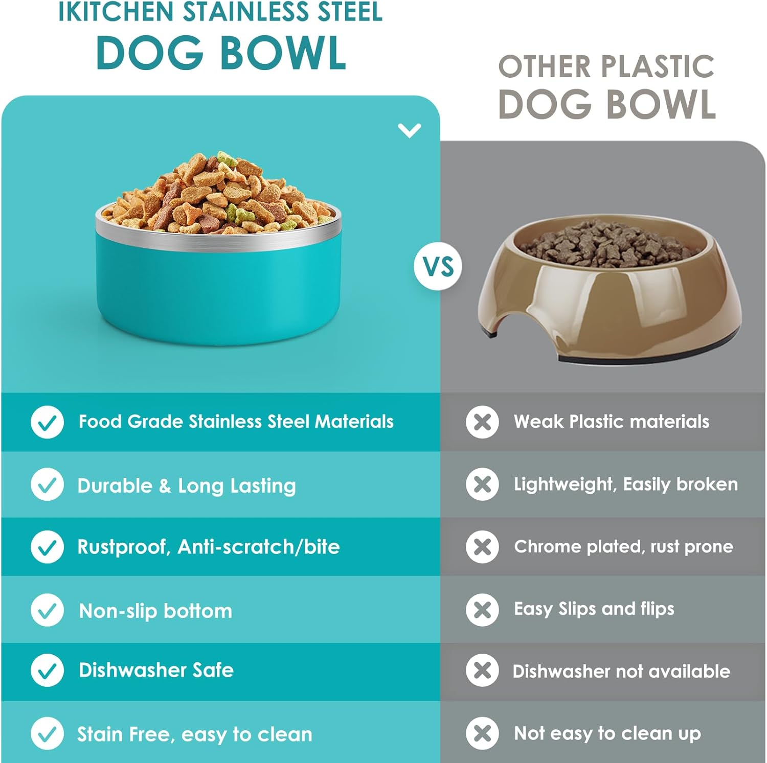IKITCHEN Dog Bowl for Food and Water, 40 Oz Stainless Steel Pet Feeding Bowl, Durable Non-Skid Double Wall Insulated Heavy Duty with Rubber Bottom for Medium Large Dogs (40 Ounces/5 Cup, Lakeblue)