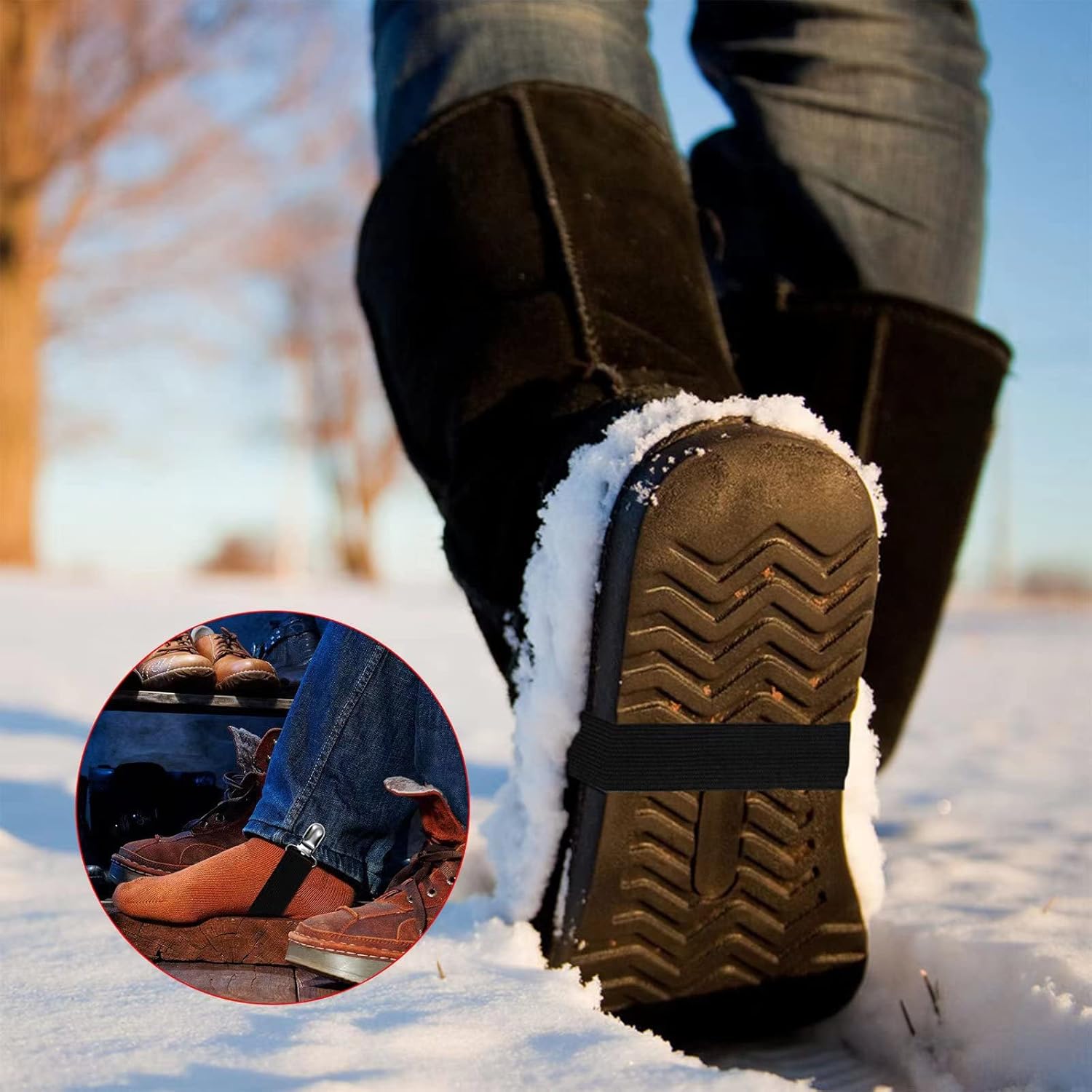 - Suitable occasions: The boot straps are attached to your pants and jeans to help you make your leg slim, which can match your pants, boots, suitable for sheet stretching, biking, skiing and other occasions