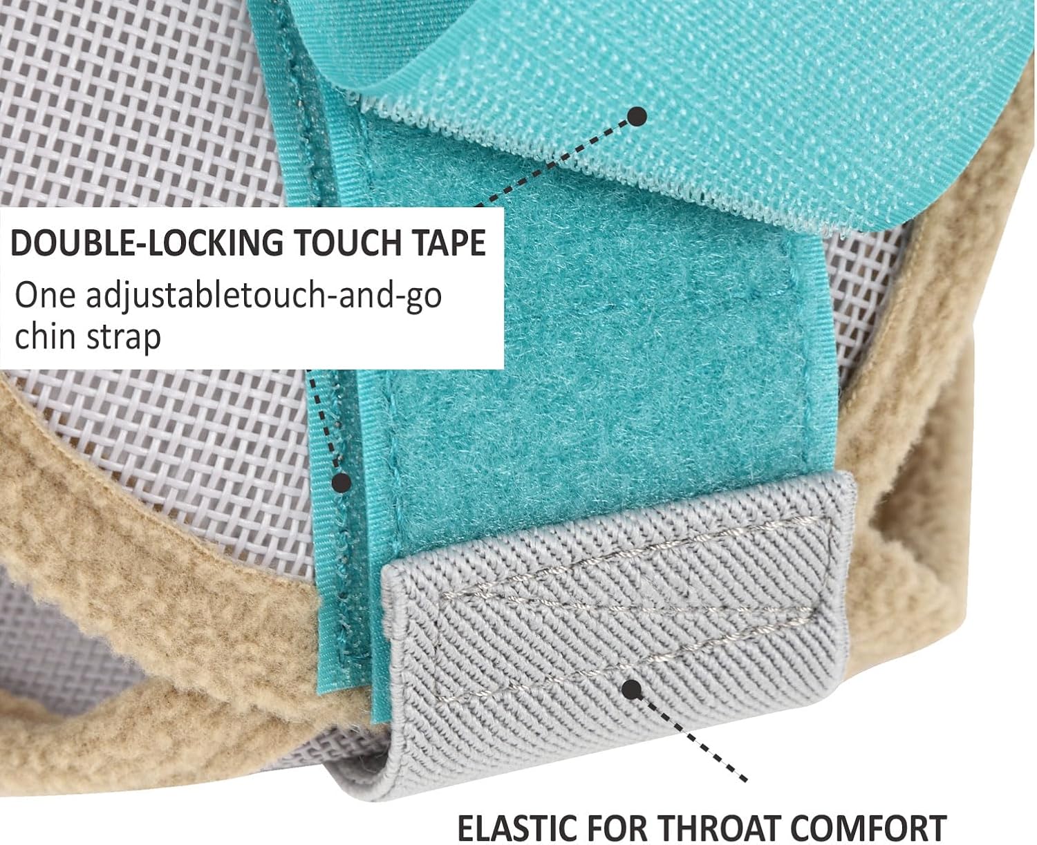 - Move Free And Feel Free. The fleece padding along the forehead and around the nose and throat prevents rubbing. The mask is lightweight, 0.31 lbs., and elastic for throat comfort. It also includes a dual-locking touch tape, secured with one adjustable touch-and-go chin strap under the jaw.