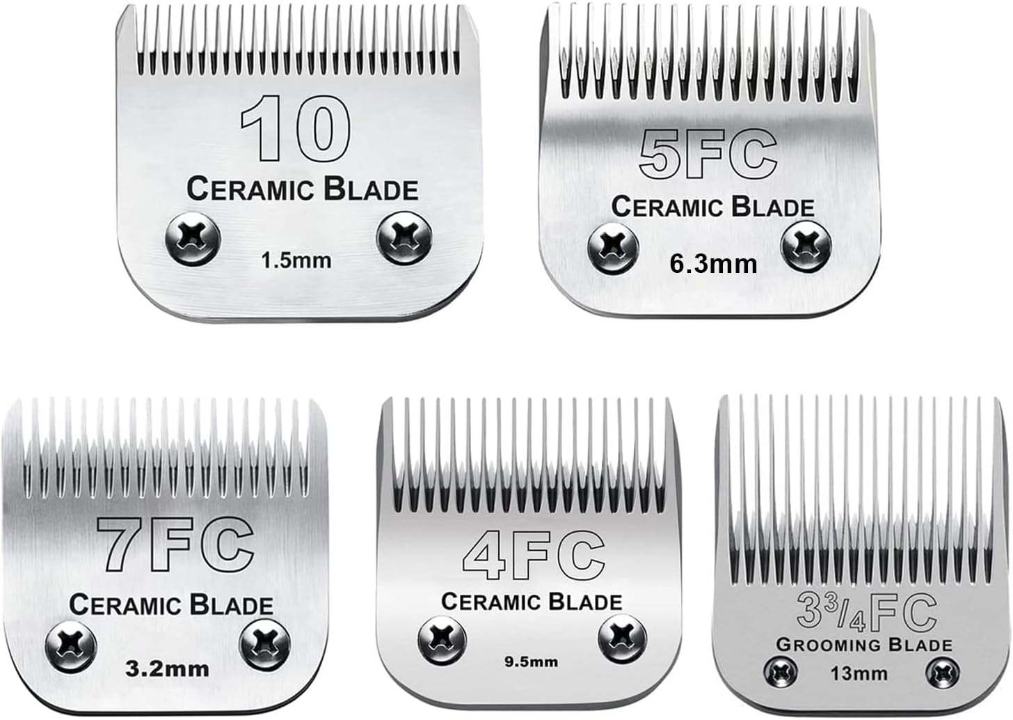 5PACK Dog Grooming Clipper Replacement Blades Compatible with Andis Pet Clipper/Oster A5/Wahl KM Series Dog Clipper with Ceramic Blade & Stainless Steel Blade (#10+5FC+7FC+3FC+4FC)