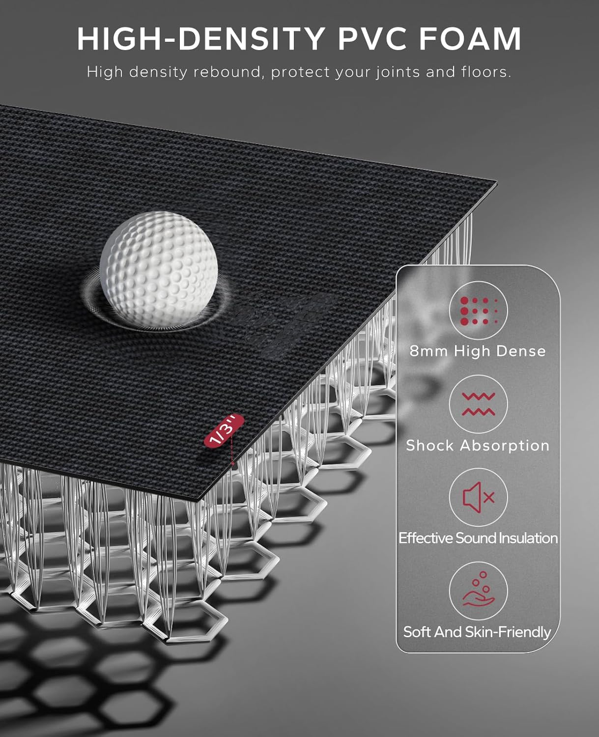 - Extra Cushion & Comfortable:Our large exercise yoga mat adopts high-density foam technology, up to 8mm thick (greater than ⅓ inch).Very soft and skin-friendly. High-density workout mat can protect your knee and other joints during intense aerobic exercise, and play a role in shock absorption. Excellent durability, tear resistance and wear resistance, designed for high-intensity training. It can also reduce noise and protect the floor