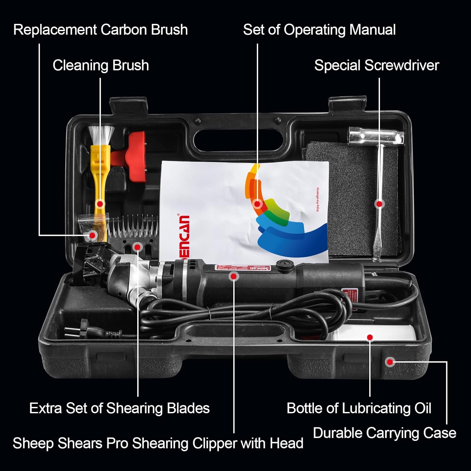 - 【PROFESSIONAL SHEEP SHEARS】: SENCAN sheep shear, a power of 750W and provides up to 2400r/min with comfortable grip protection to improve efficiency, this electric clippers makes your job of shearing much more easily and effectively.